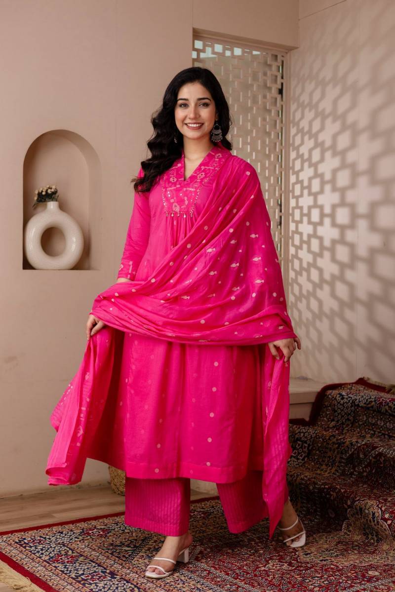 Buy Tanyaa P 370 Cotton Readymade Suit Set online at the best wholesale price. This beautifully crafted 3-piece ethnic ensemble features a cotton top with elegant neck work, paired with matching cotton bottoms and a soft printed cotton dupatta. Ideal for everyday comfort with a touch of graceful style.