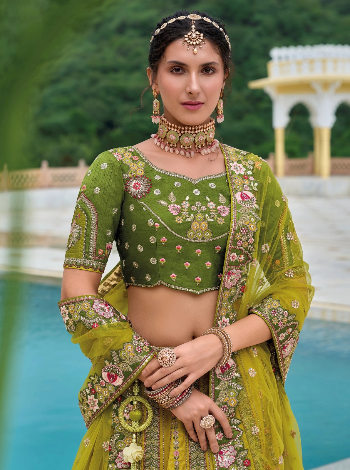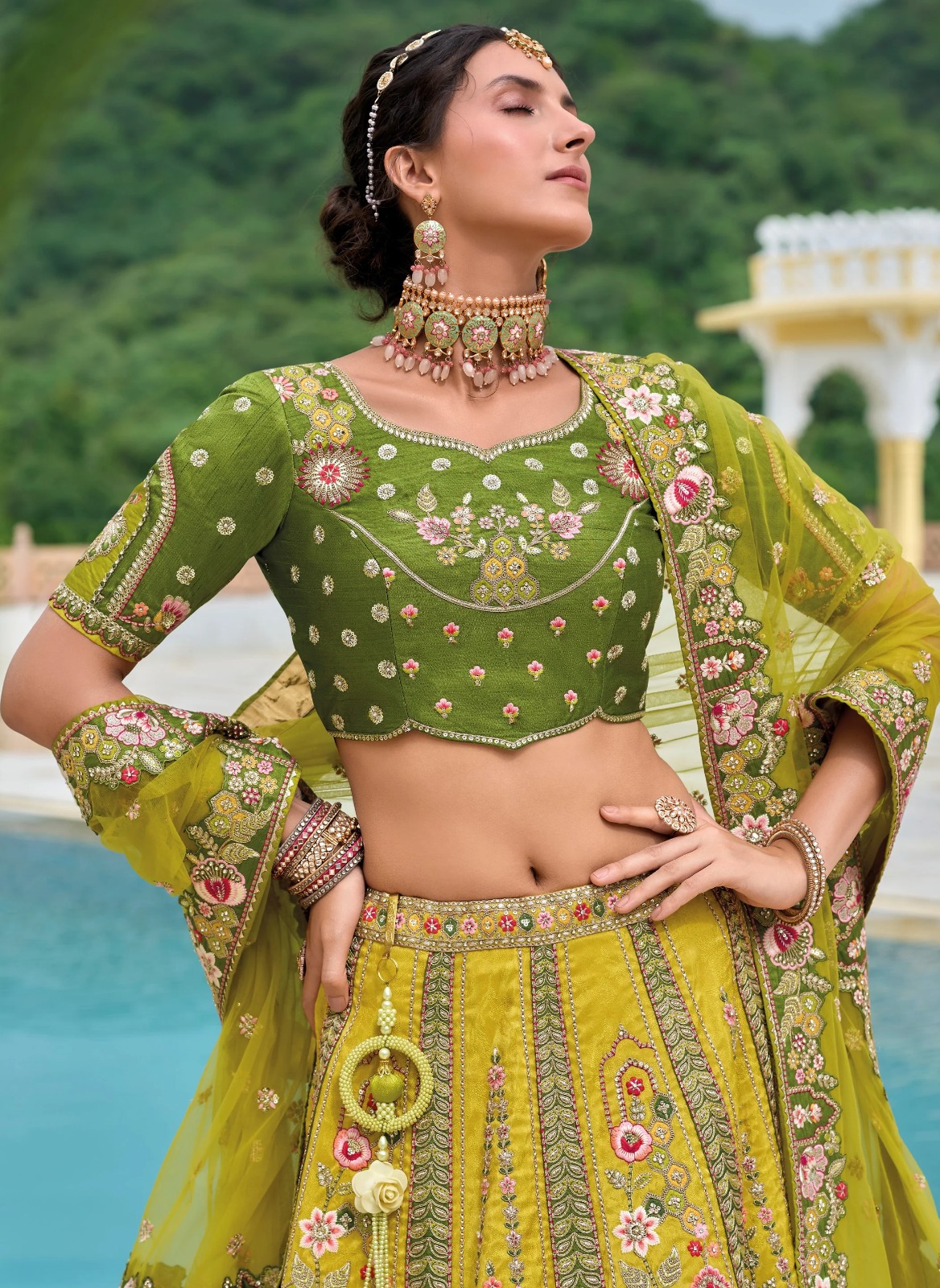 Tathastu Anaara Mehndi Green Designer Traditional Silk Lehenga