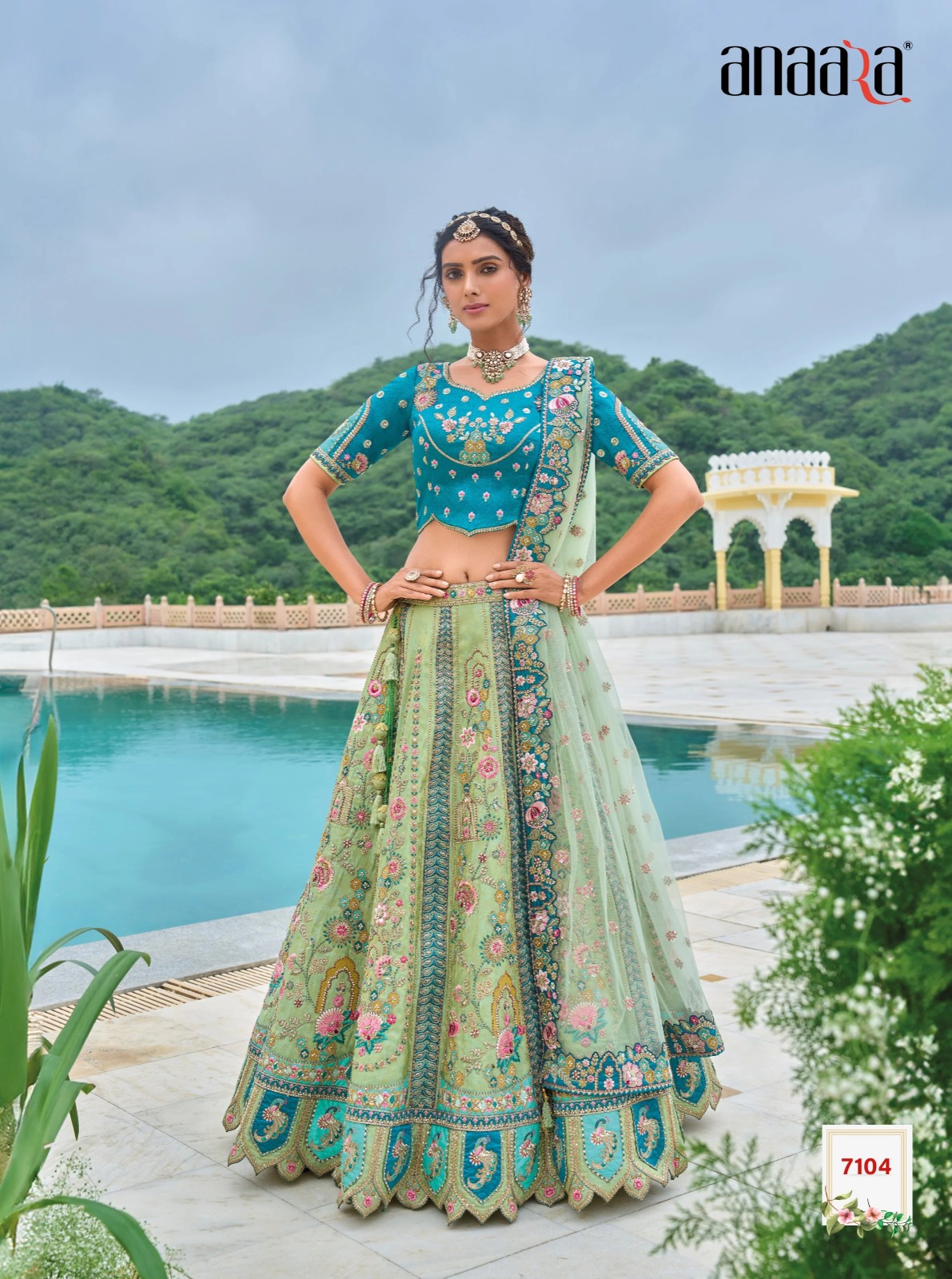 Buy Tathastu Anaara Saga Green Designer Silk Lehenga with viscose satin base, embroidery, cut work, and handwork online at wholesale price.