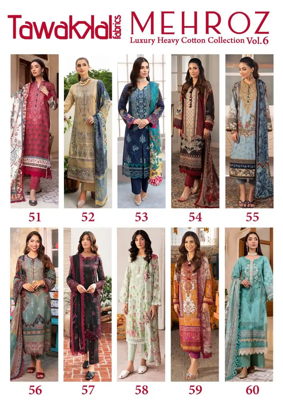 Tawakkal Mehroz Luxury Heavy Cotton Collection Vol 6 Pure Cotton Wholesale Pakistani Salwar Suit Catalog