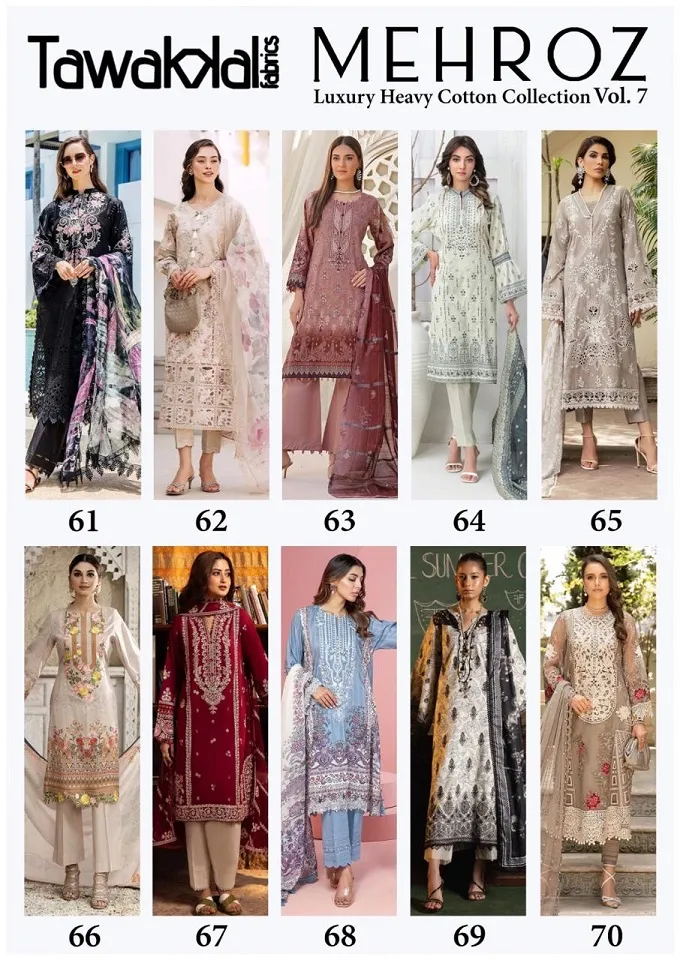 Tawakkal Mehroz vol 7 Lawn Cotton Wholesale Pakistani Salwar Suit Collection
