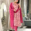 - Fabric: The top is available in two variants: Muslin Silk and Pure Georgette, offering versatility and options to suit your preferences. The bottom is crafted from Pure Santoon fabric, known for its durability and comfort, while the dupatta features Soft Nazmeen fabric, adding a touch of softness and elegance to the ensemble.