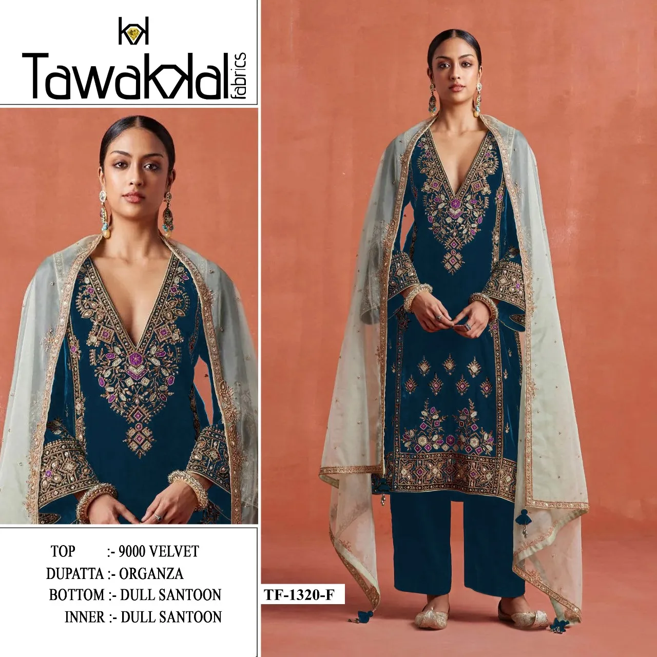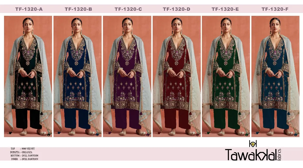 Product Name: Tf 1320 A To F Velvet Embroidery Work Pakistani Salwar Kameez Suits