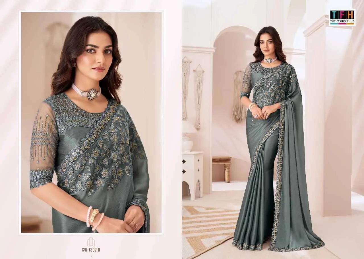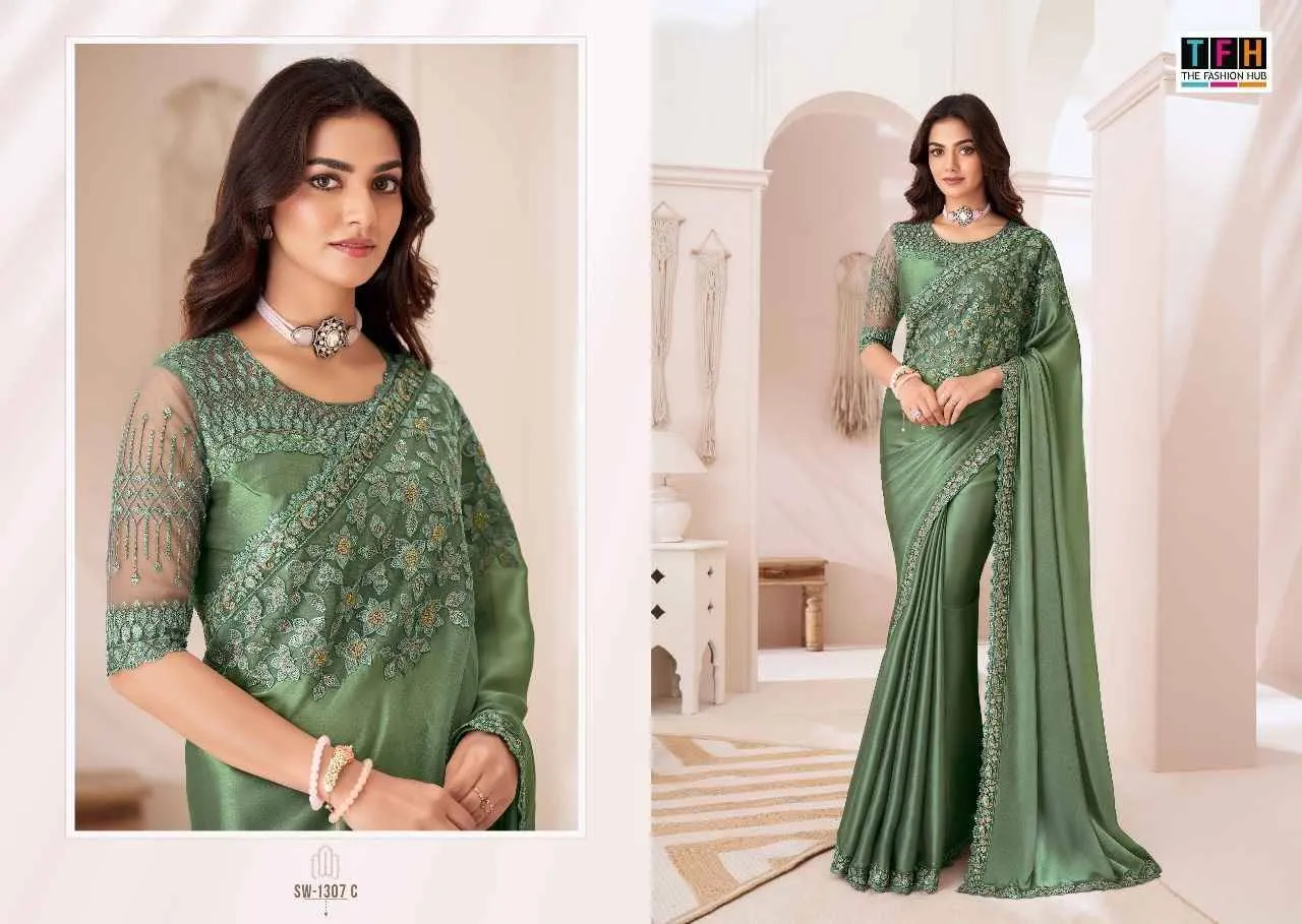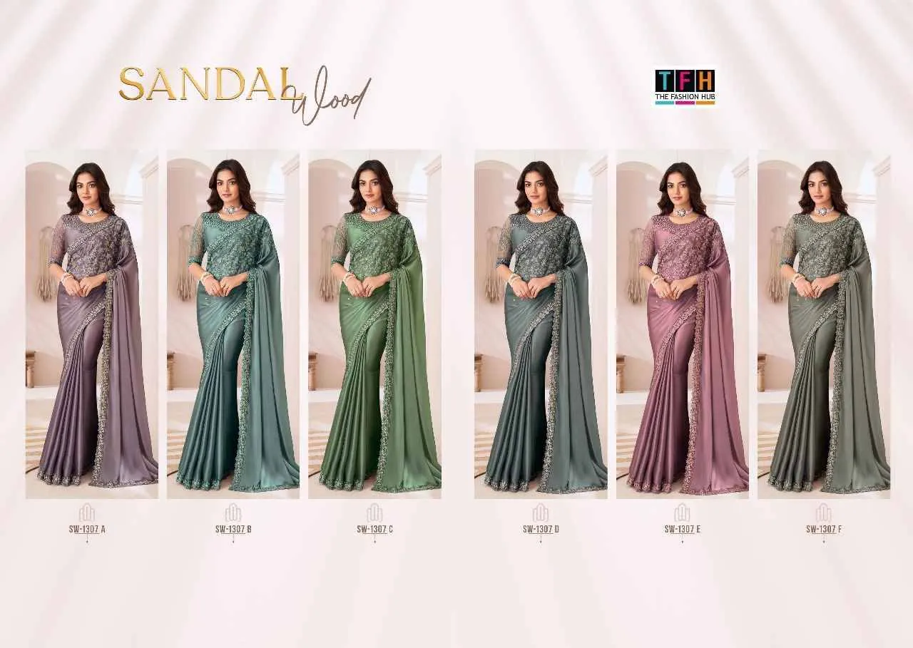Tfh Sandalwood 1307 Colour’S Sartin Chiffon Wholesale Designer Sarees Collection