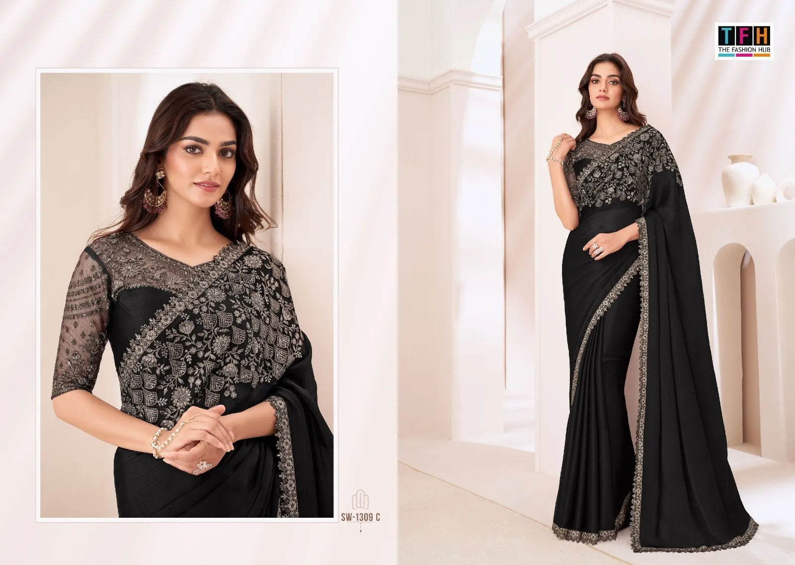 Tfh Sandalwood 1309 Colour’S Sartin Chiffon Wholesale Designer Sarees Collection