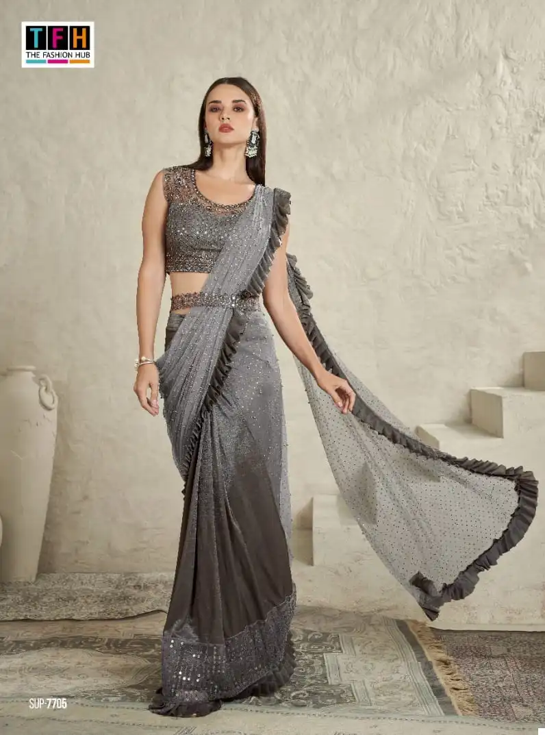 - Saree Material: The saree is crafted from a combination of Imported Satin Silk, Georgette Lycra Net, Shimmer Silk, and includes a belt. These high-quality materials ensure a luxurious drape and a stunning appearance.