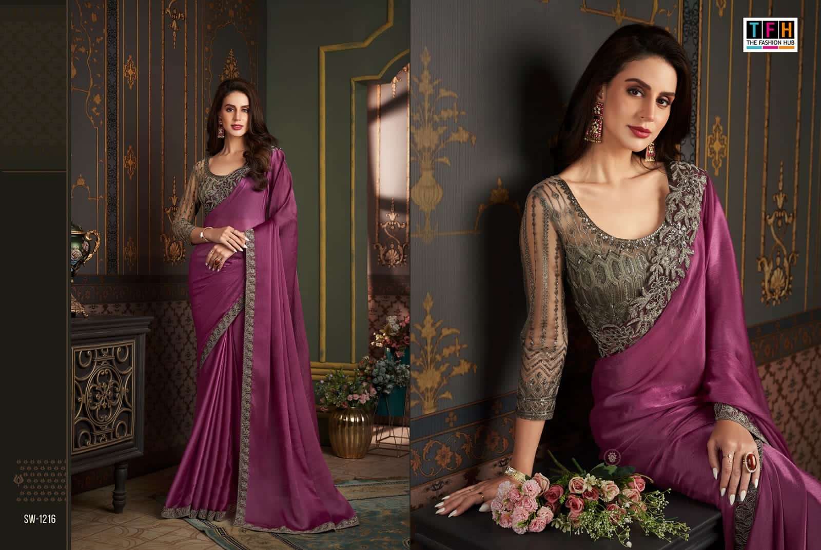 Tfh Sw-1216 Sartin Silk Wholesale Designer Saree Collection