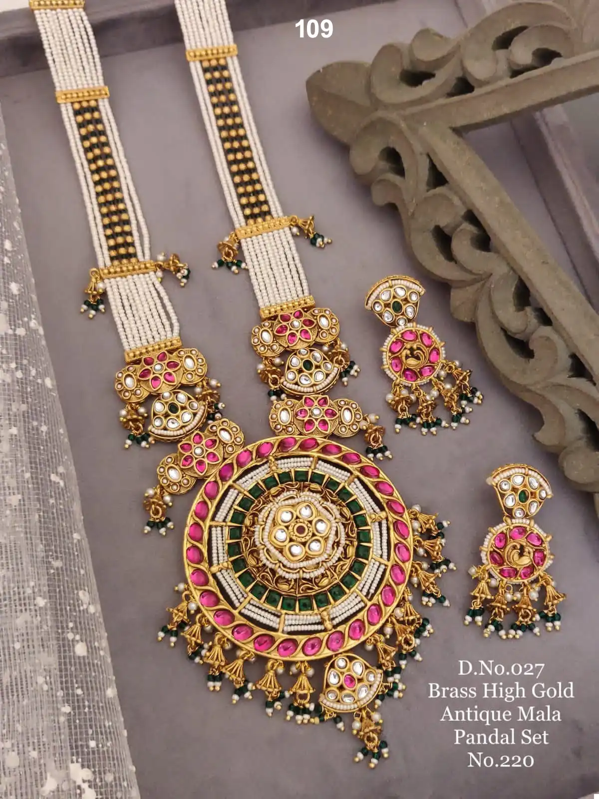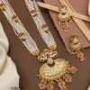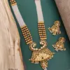 SEO Keywords: Traditional Necklace Set, Gold-Plated Jewelry, Kundan Necklace, Ethnic Wear, Wedding Jewelry, Festive Collection, Designer Jewelry, Artisan Crafted, Peacock Design, Jhumka Earrings, Brass Jewelry, High-Gold Finish.