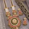 Discover the epitome of heritage and craftsmanship with our Traditional Gold-Plated Kundan Necklace Set. Meticulously designed with brass and a high-gold finish, this set evokes the splendor of royal eras. The necklace features an intricate pattern of beads and Kundan, while the centerpiece is adorned with a vibrant peacock motif, adding a touch of whimsy to the classic design. Complemented by matching jhumka-style earrings, each piece is studded with sparkling gems in hues of ruby red, emerald green, and pristine white, reflecting an air of timeless elegance.