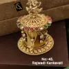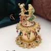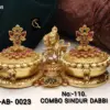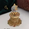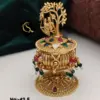 Experience the allure of tradition with our exquisitely designed Gold-Plated Sindoor Dabi. This enchanting piece showcases the epitome of craftsmanship with its detailed carvings and a harmonious blend of cultural symbolism and modern aesthetics. Adorned with vibrant gemstones and delicate hanging beads, this Sindoor Dabi is not just a container for the sacred vermilion but a statement piece that celebrates the beauty of rituals. Perfect for gifting or adding a touch of elegance to your daily puja routine.