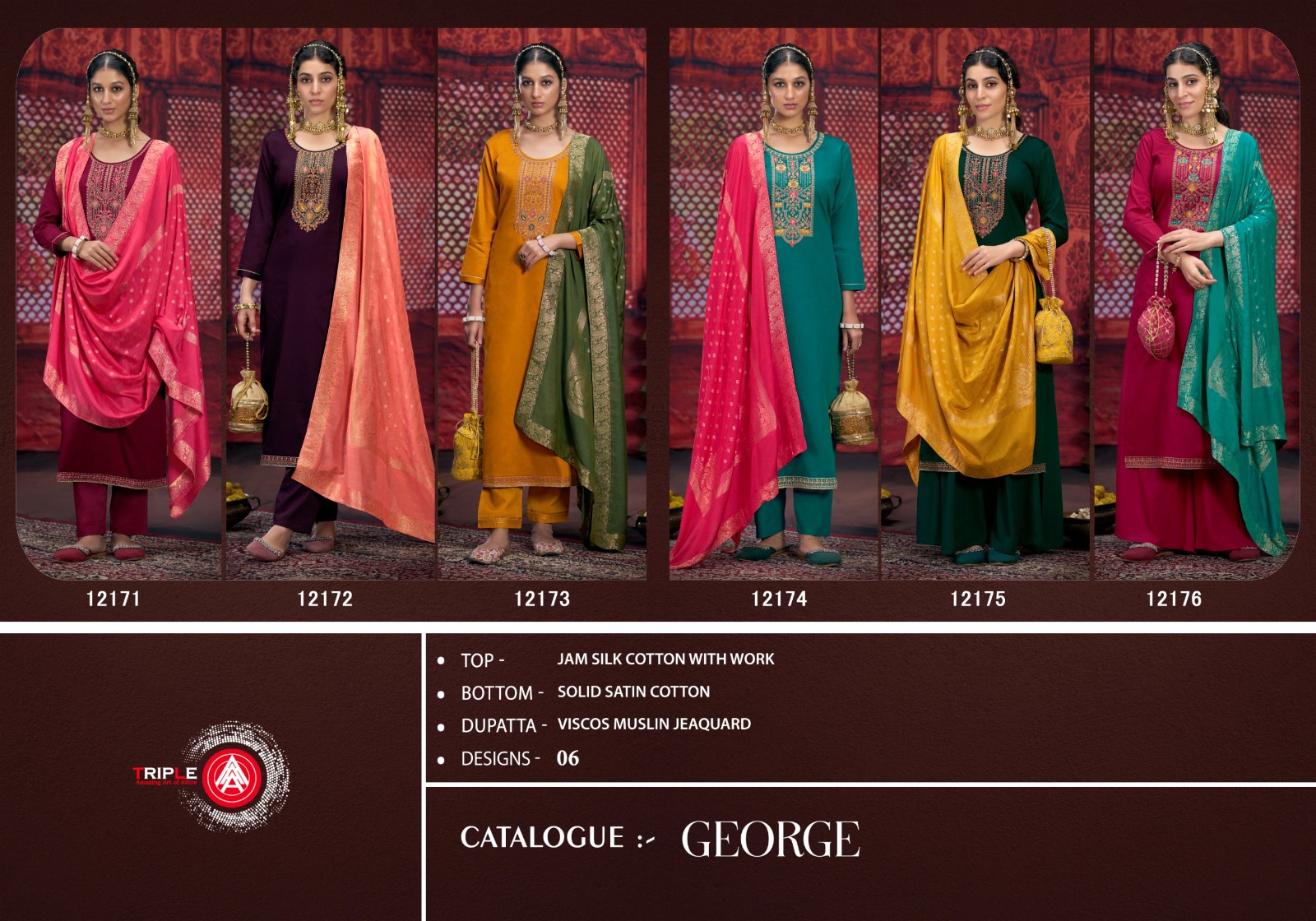 Triple A George Jam Silk Wholesale Fancy Salwar Suit Collection