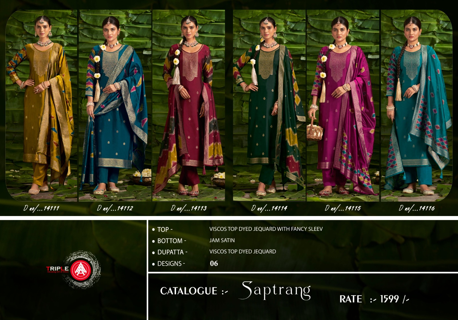 Triple A Saptrang Viscos Wholesale Designer Salwar Suit Catalog