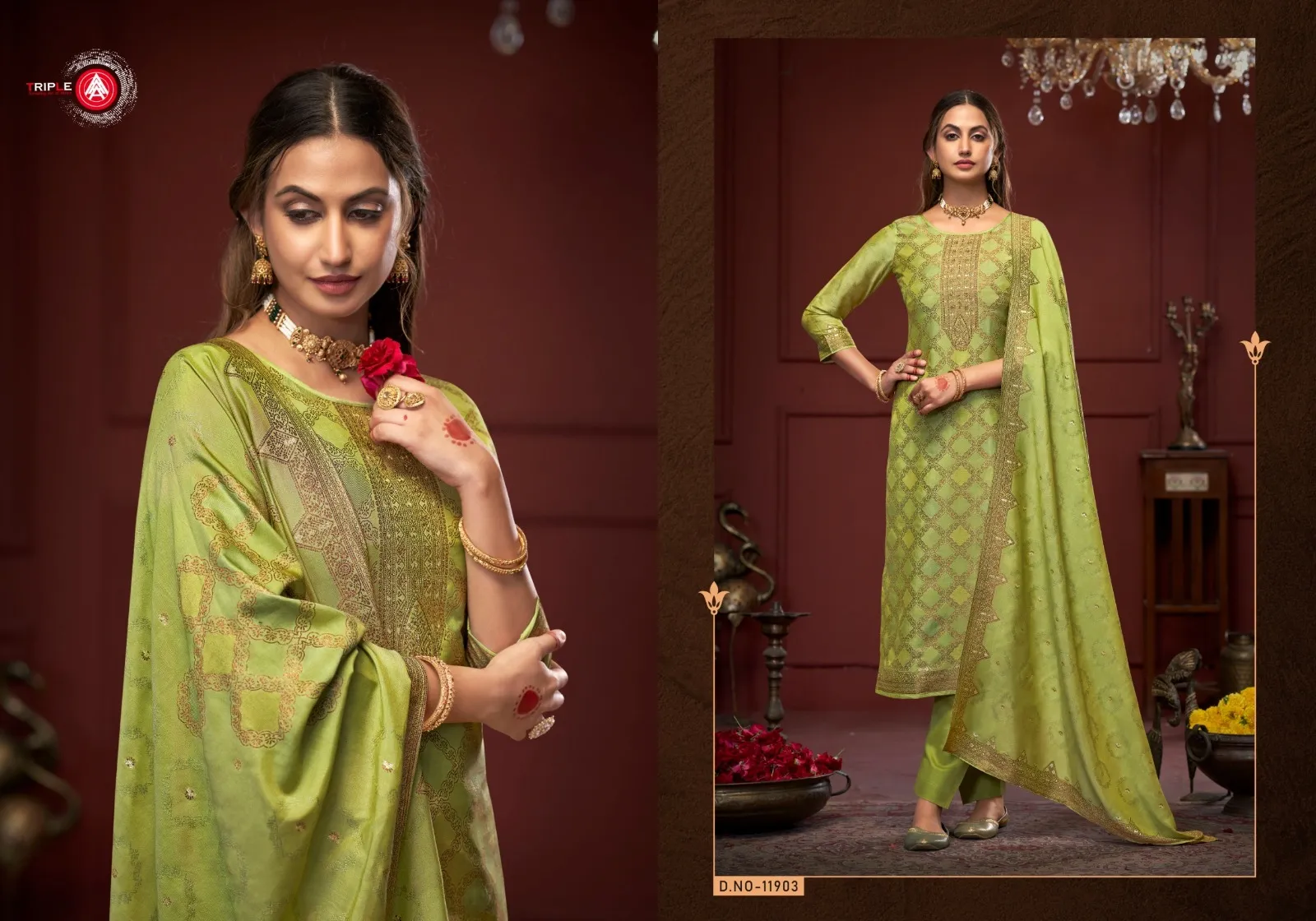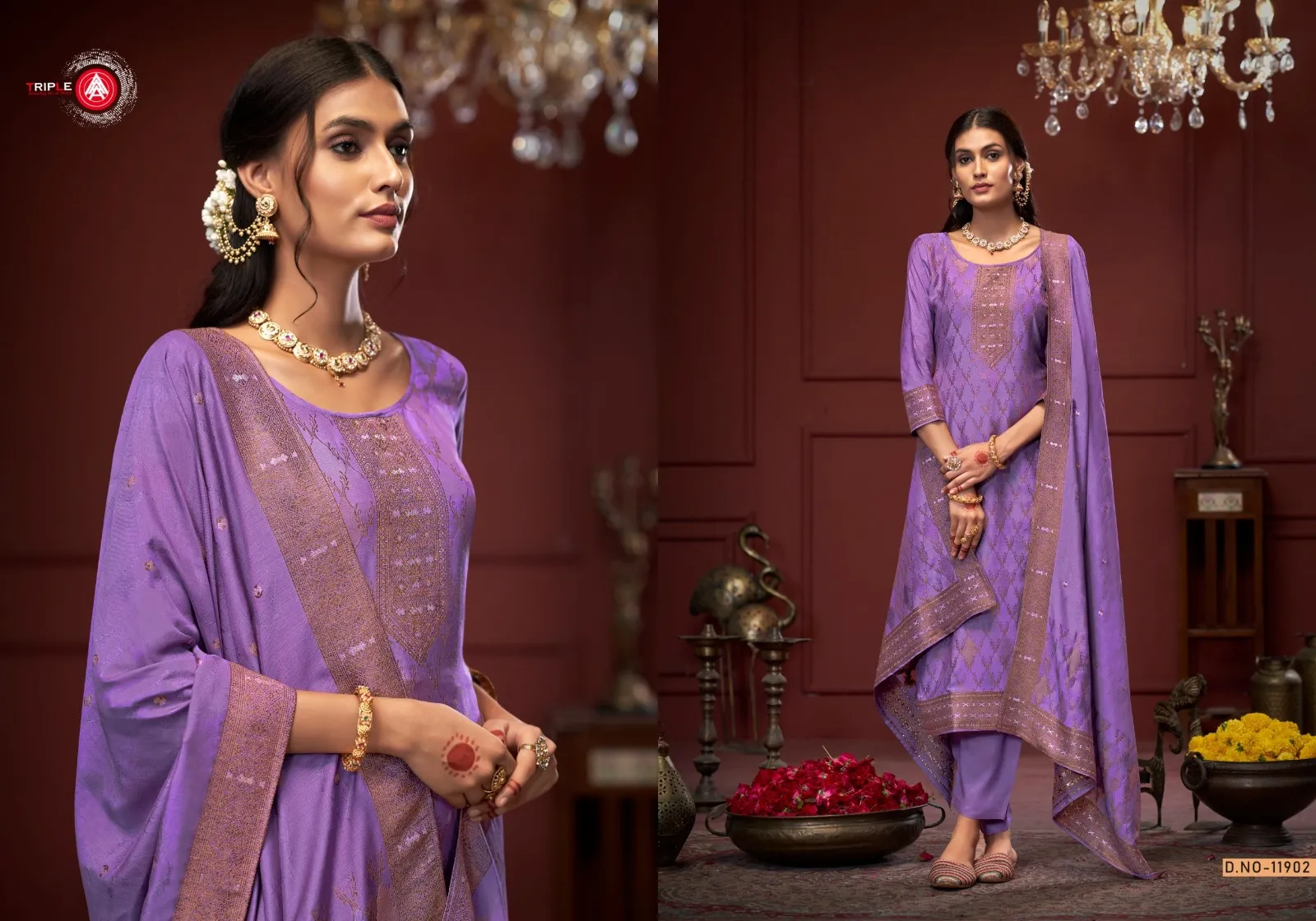 Triple A Stuti Repeat Viscos Muslin Jequard Wholesale Designer Salwar Suit Collection