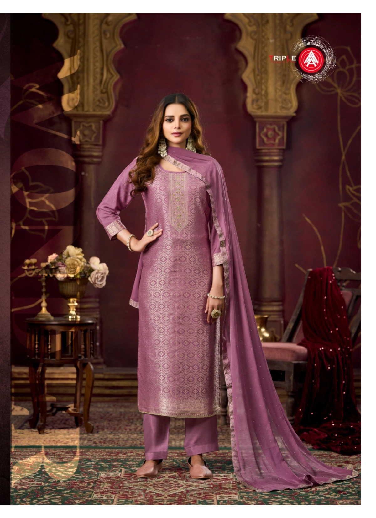 Triple Aaa Koyal Vol 4 Muslin Jacquard With Handwork Suit