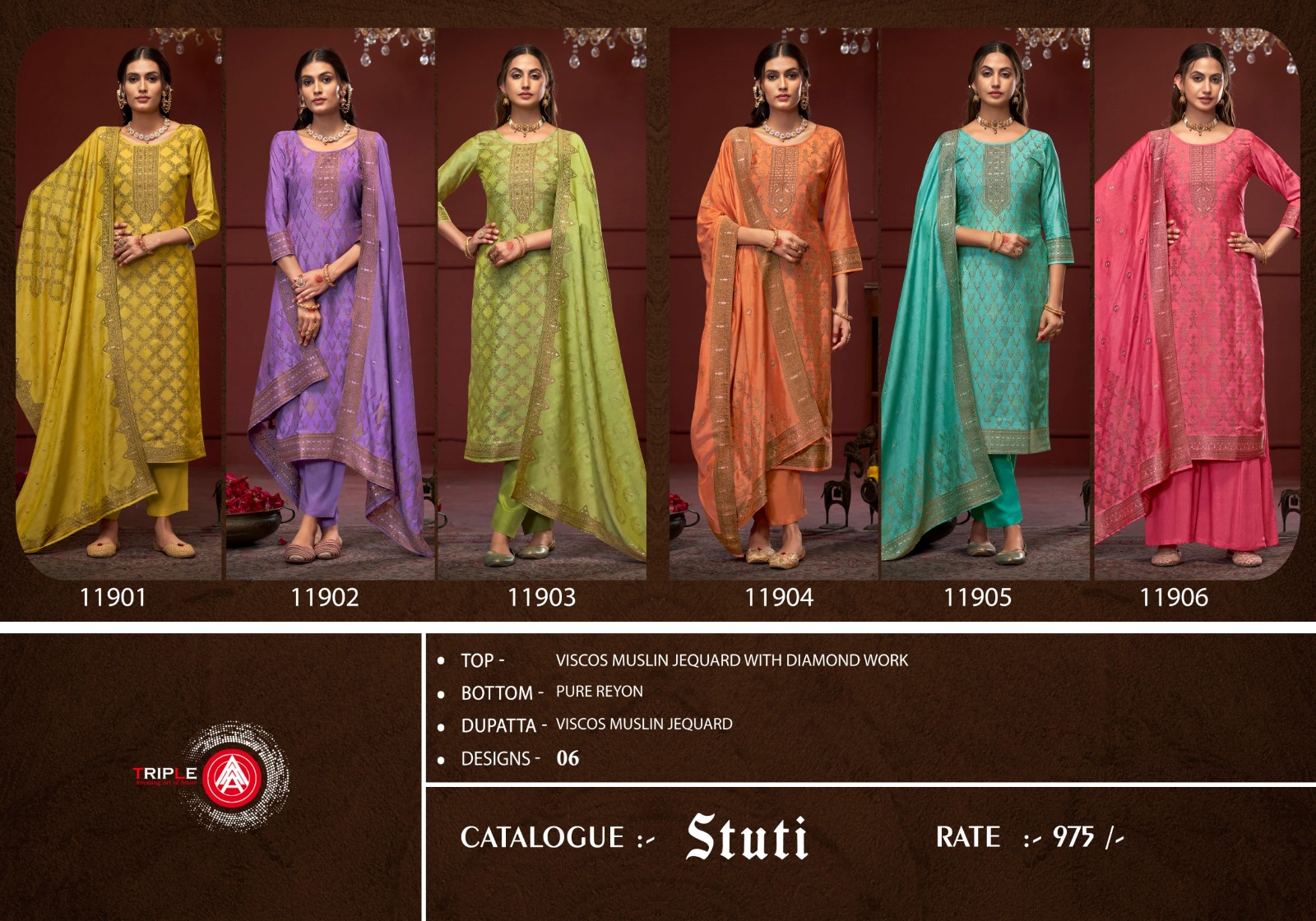 Triple Aaa Stuti Fancy Viscose Wholesale Designer Salwar Suit Collection