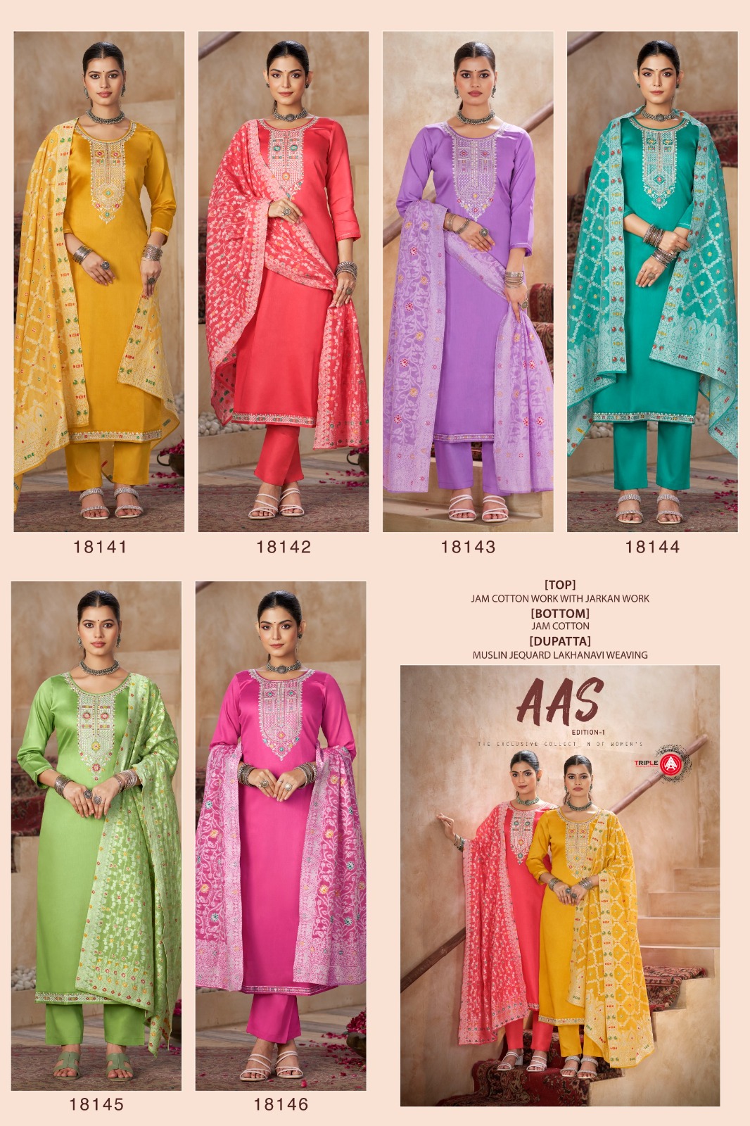 TRIPLE AAS EDITION-1 Wholesale Jam Cotton Salwar Suit Collection.