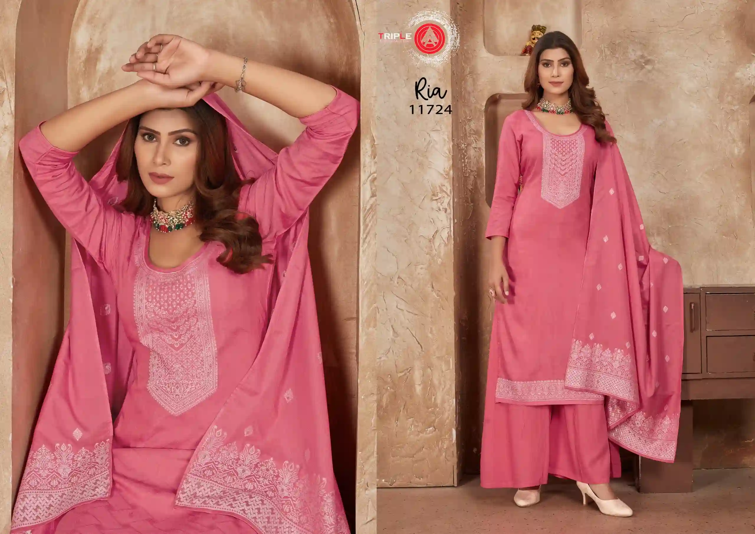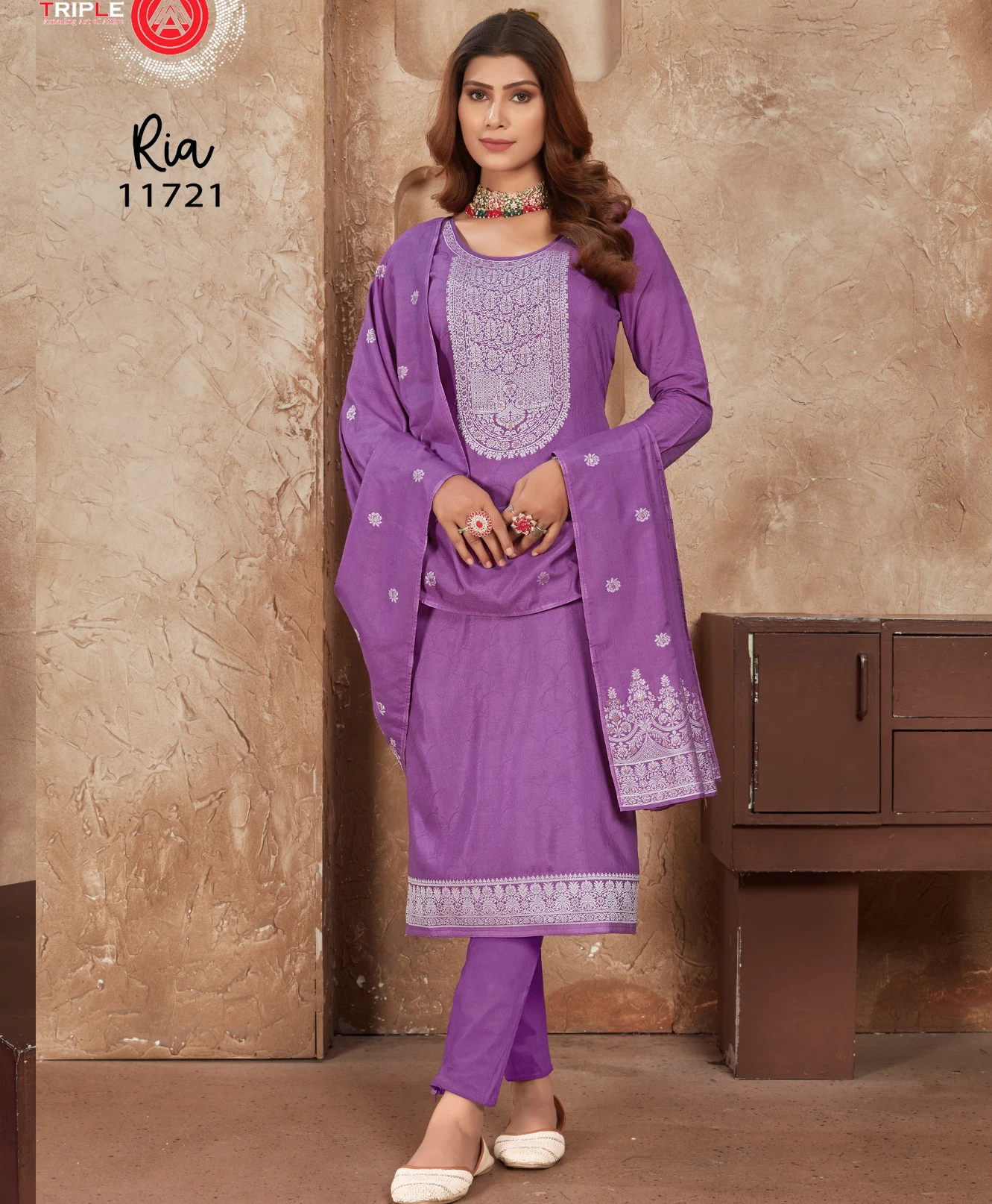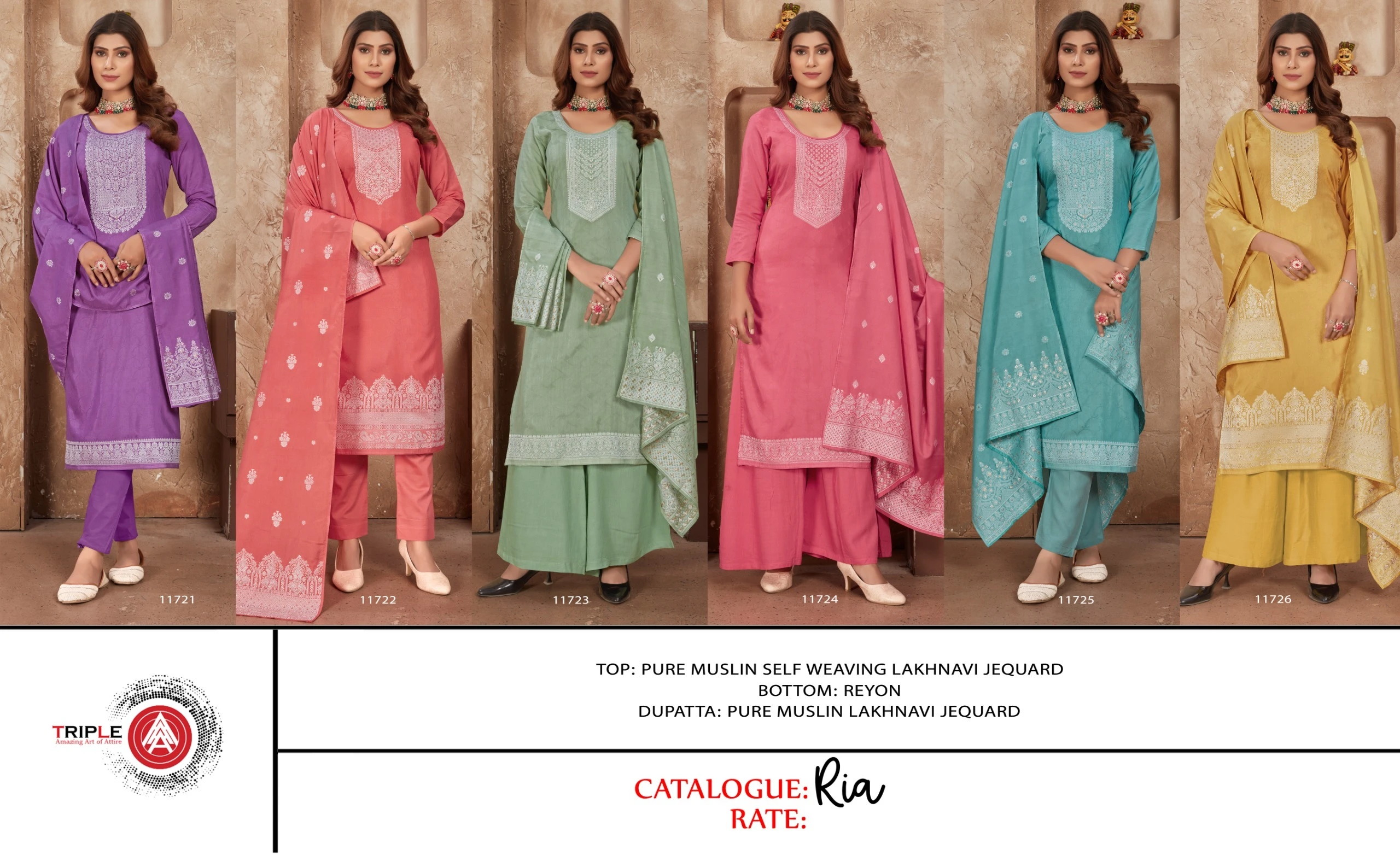 This ensemble features a top made from pure muslin with self-weaving Lakhnavi Jacquard, a rayon bottom, and a matching dupatta of pure muslin Lakhnavi Jacquard. The set is available as a complete set of 6 pieces, ensuring a coordinated and elegant outfit.