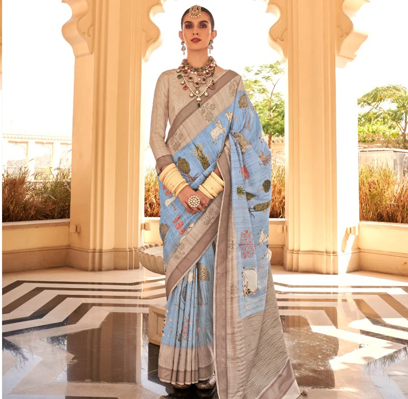 - Design: Hb Smart Bengal design with aqua finish, foil, and khadi print