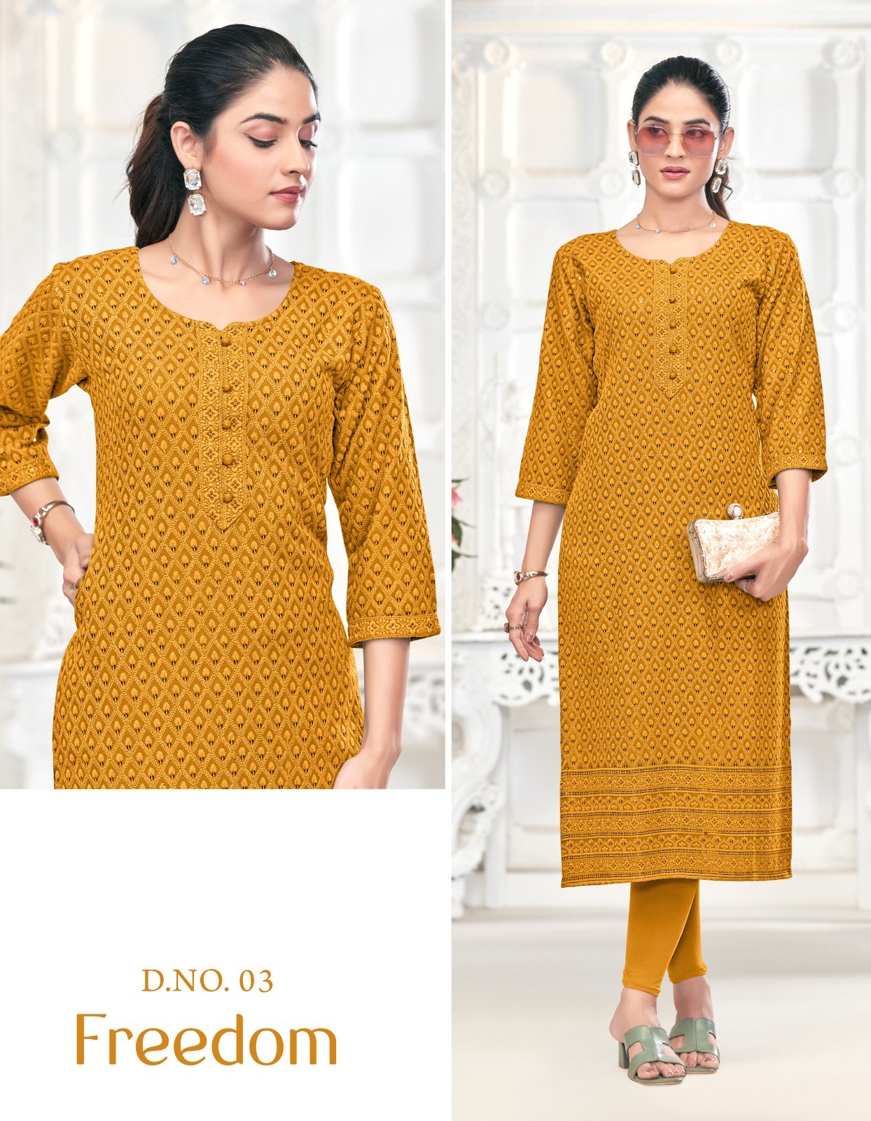 Tunic House Freedom Chikankari Wholesale Rayon Kurti Collection.