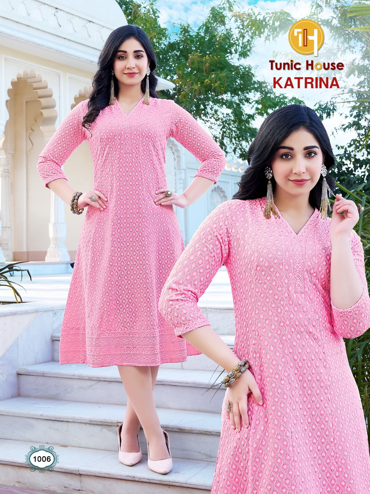 Tunic House Katrina Wholesale Chikankari Anarkali Kurti Collection.