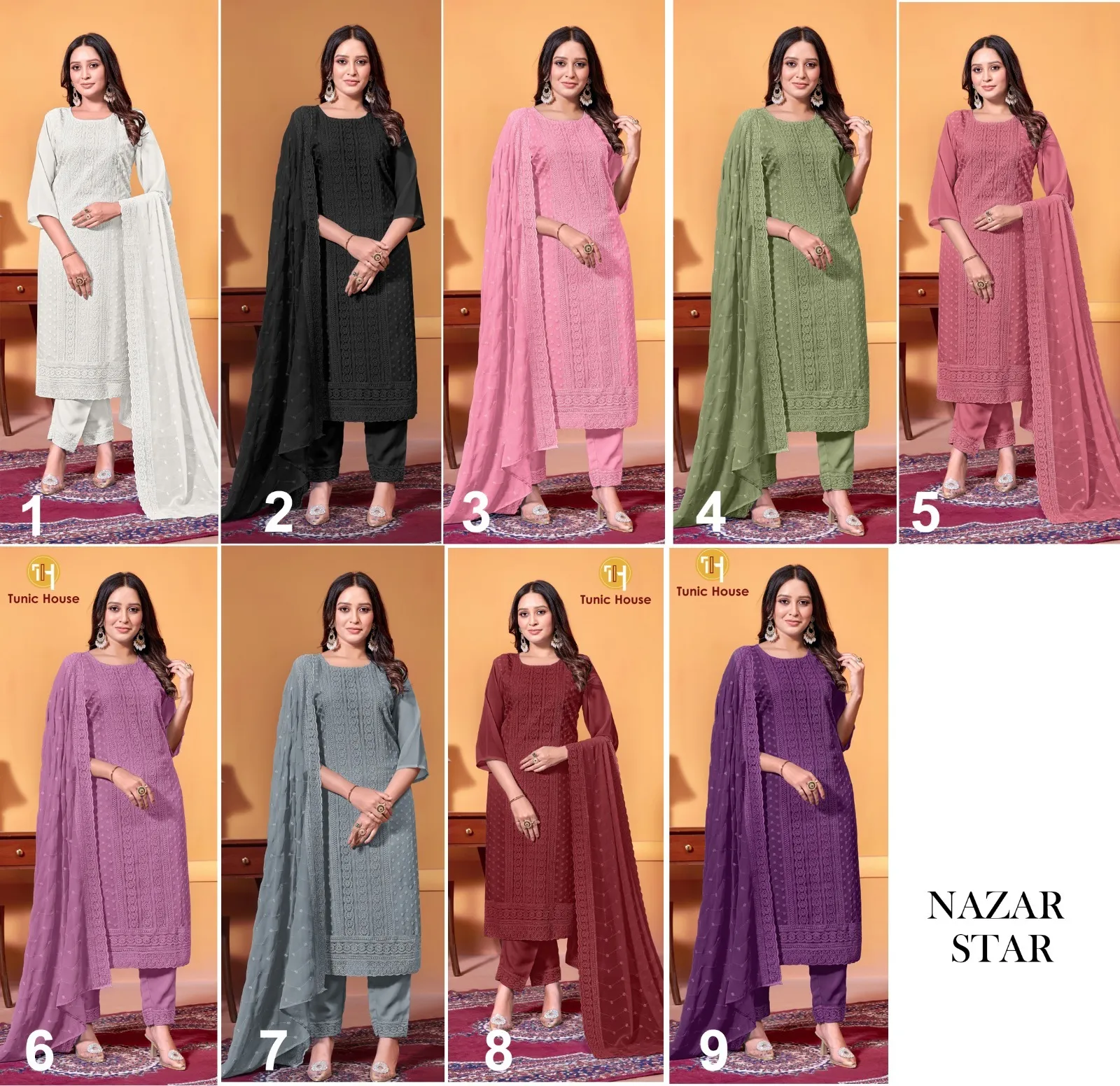 Tunic House Nazar Star Georgette Wholesale Readymade Salwar Suit Collection