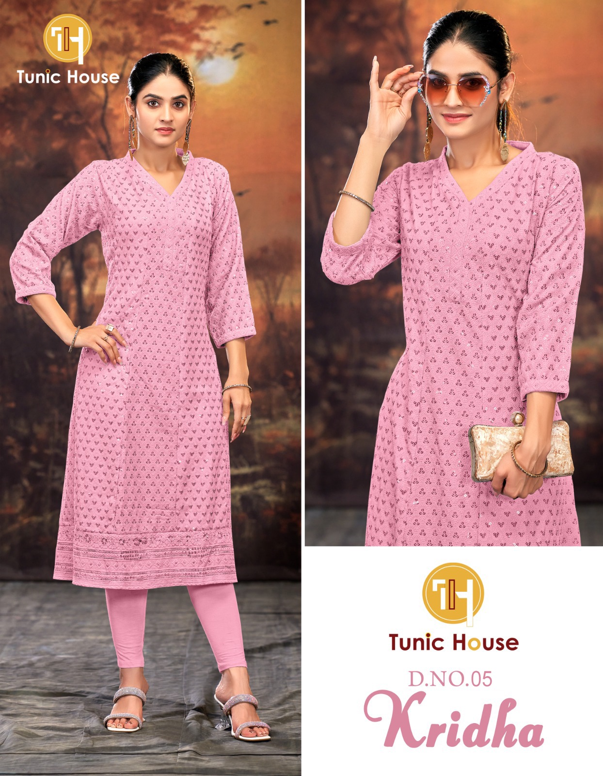 Buy Tunic House Kridha Anarkali Kurti in viscose rayon with all-over chikankari and sequin work at the best wholesale price.