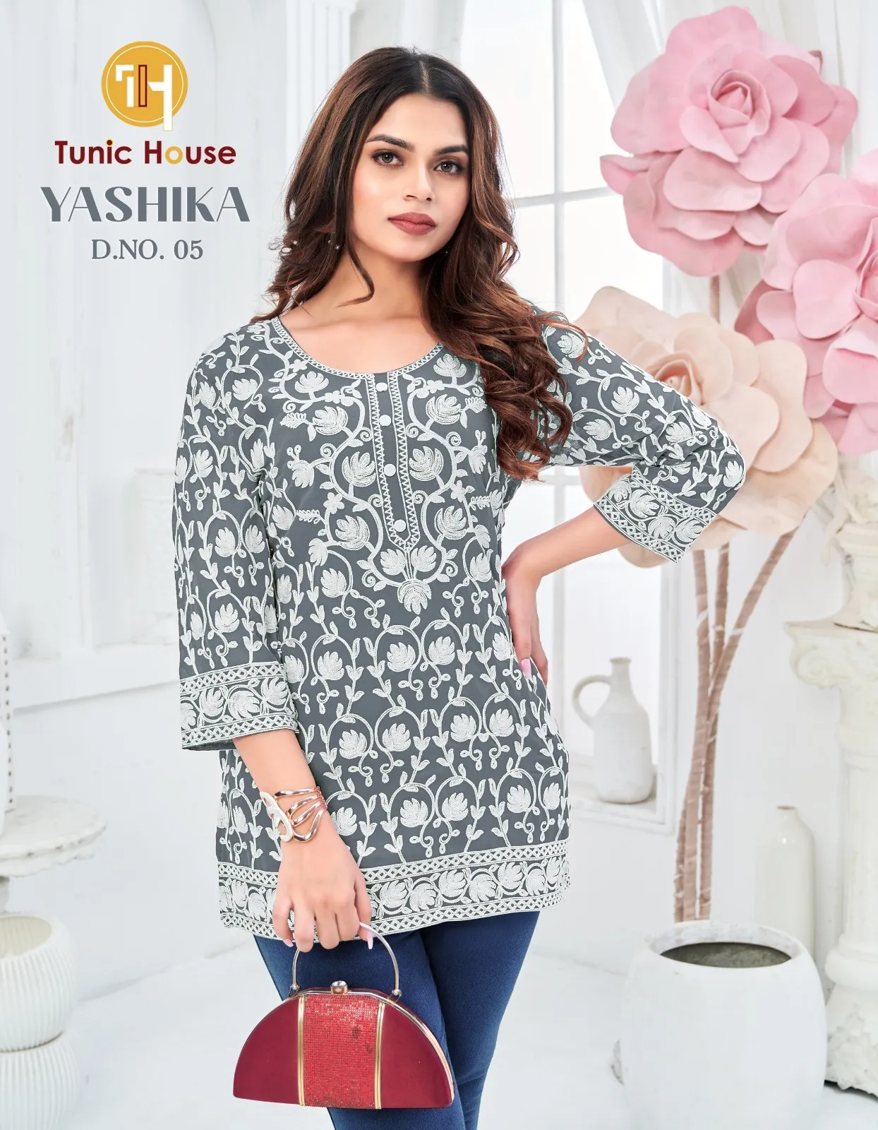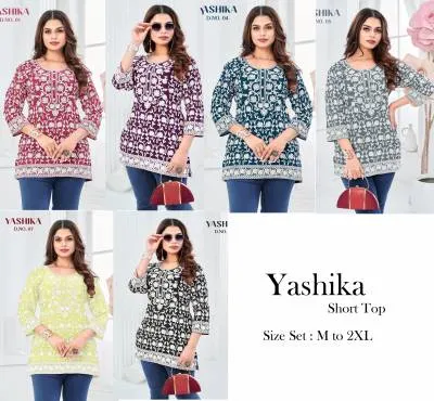 Tunic House Yashika Georgette Shiffly Worked Short Tops