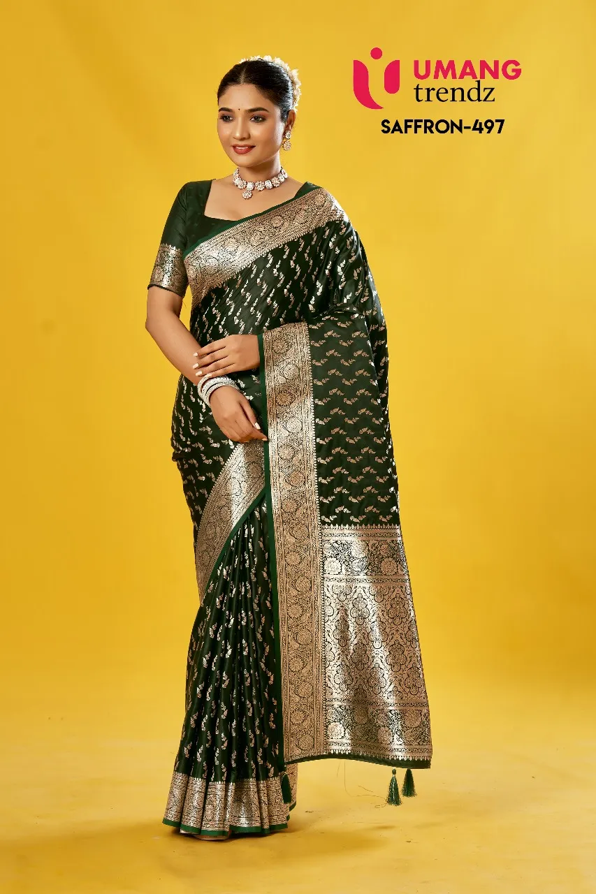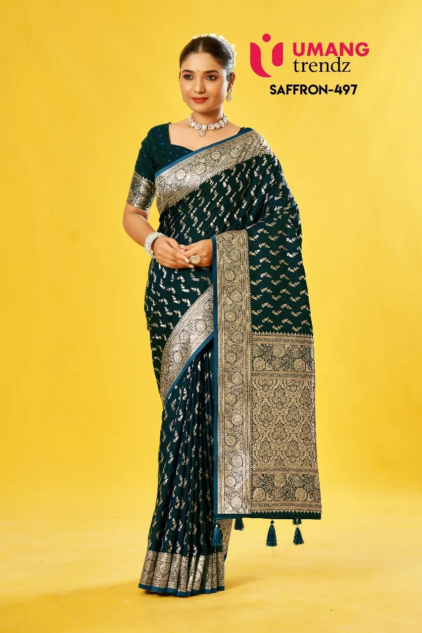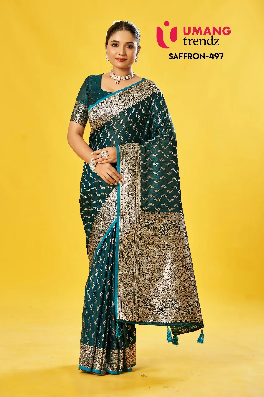 Umang Saffron 497 Satin Wholesale Fancy Saree Collection