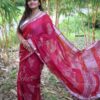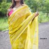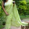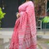 Premium original linen saree adorned with elegant digital prints, silver jari patta, and stylish latkan accents. Comes with a digitally printed blouse piece. Ideal for summer occasions and elegant daily wear.