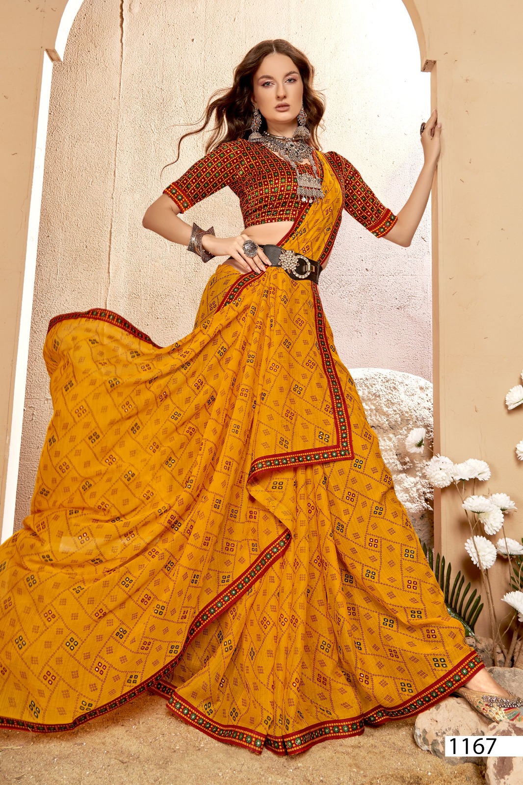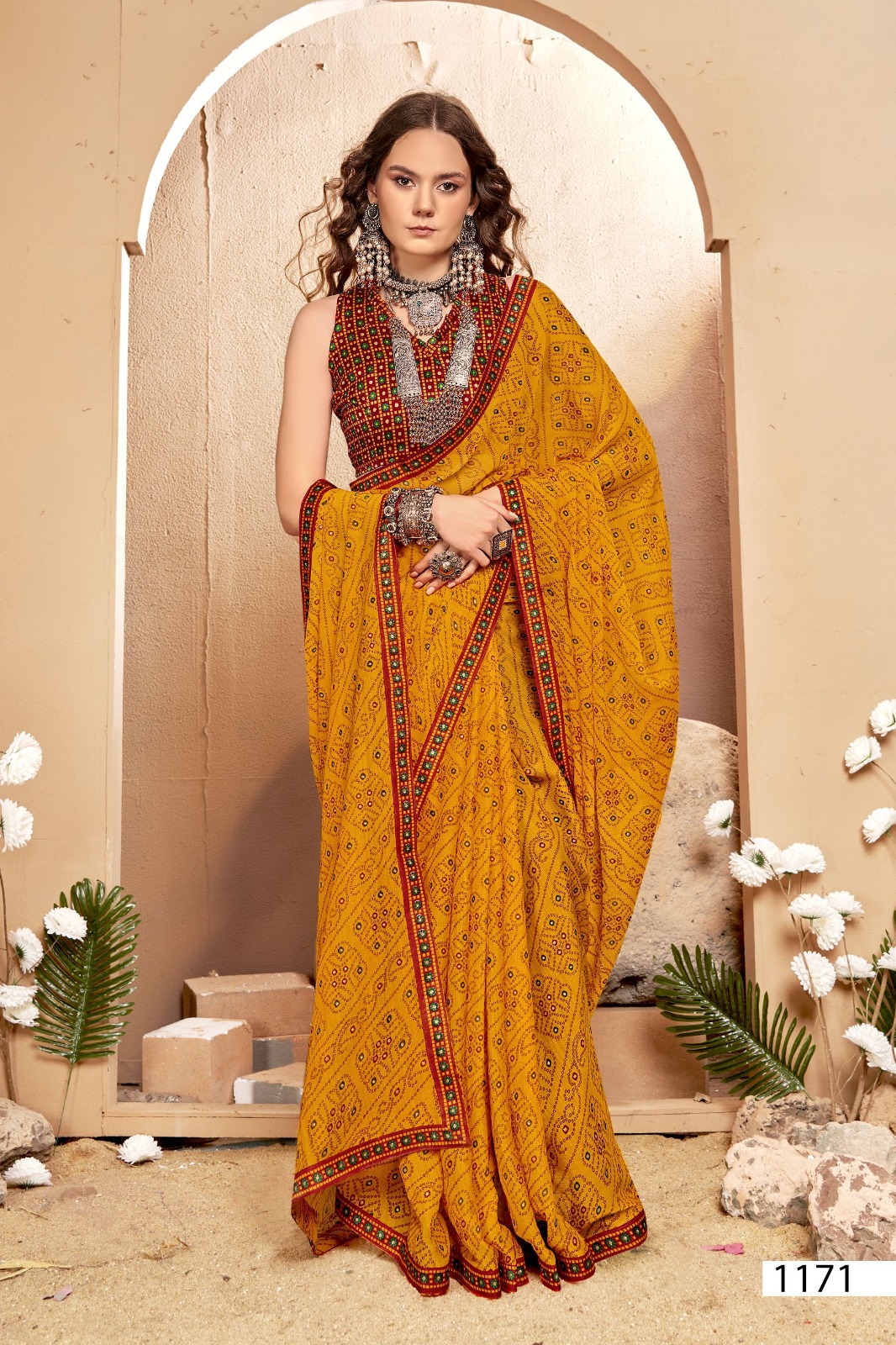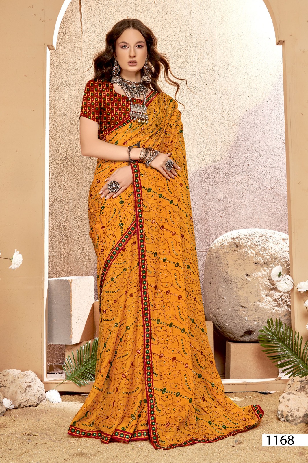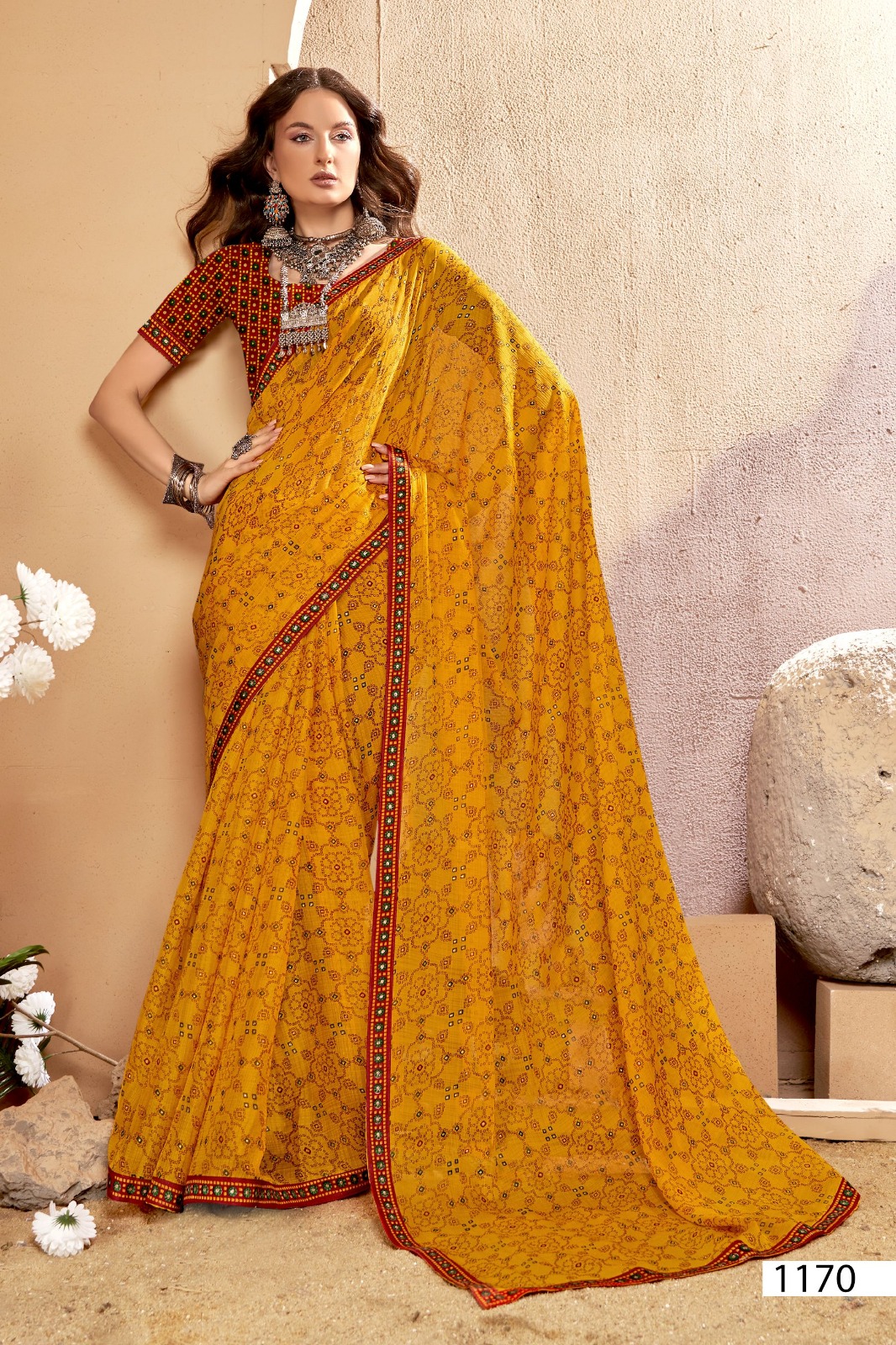 Introducing the Vallabhi Lite Collection, featuring the elegant Dhuri Catalog. This collection includes 6 stunning pieces, each designed with the timeless charm of Bandhani prints and adorned with a delicate lace border, making it the perfect choice for festive occasions, casual outings, and ethnic celebrations.