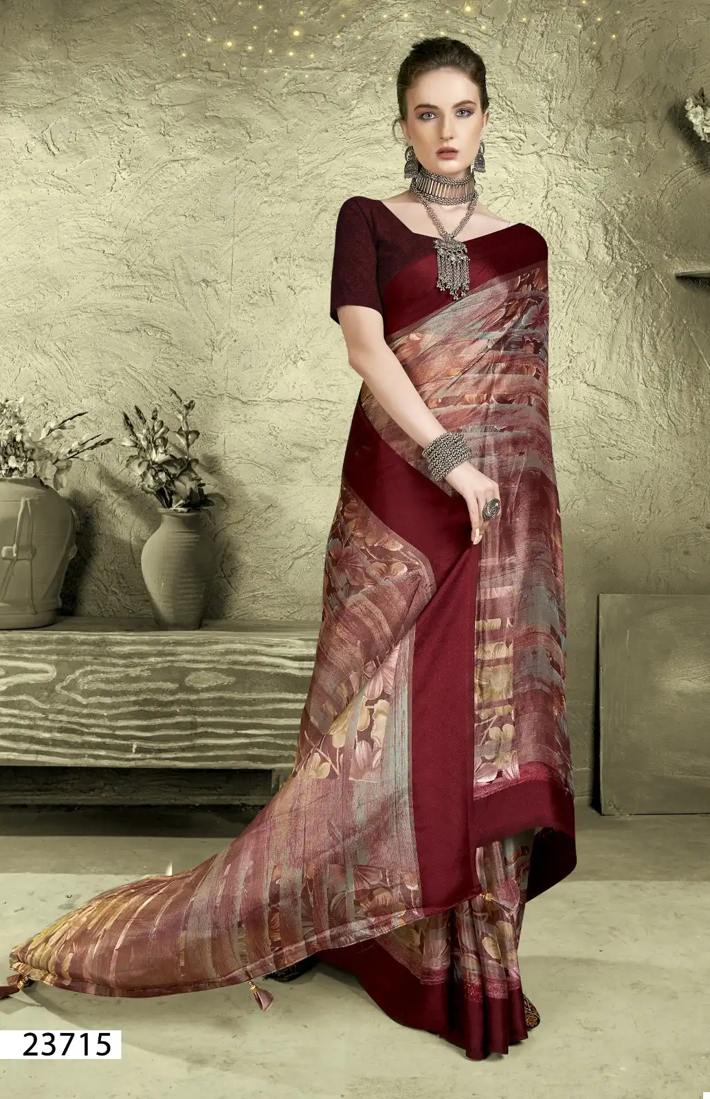 Blouse: Accompanying each saree is a fancy blouse piece. These blouses are designed to complement the Brasso sarees with their stylish and contemporary designs. The combination of traditional sarees with modern blouses adds a touch of uniqueness to each outfit, making them stand out in any wardrobe.