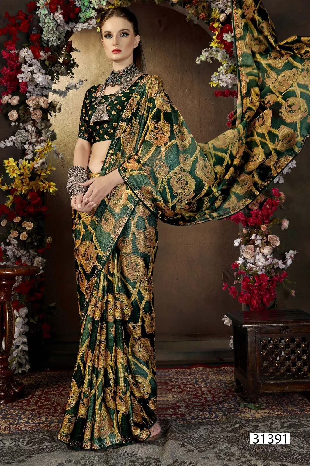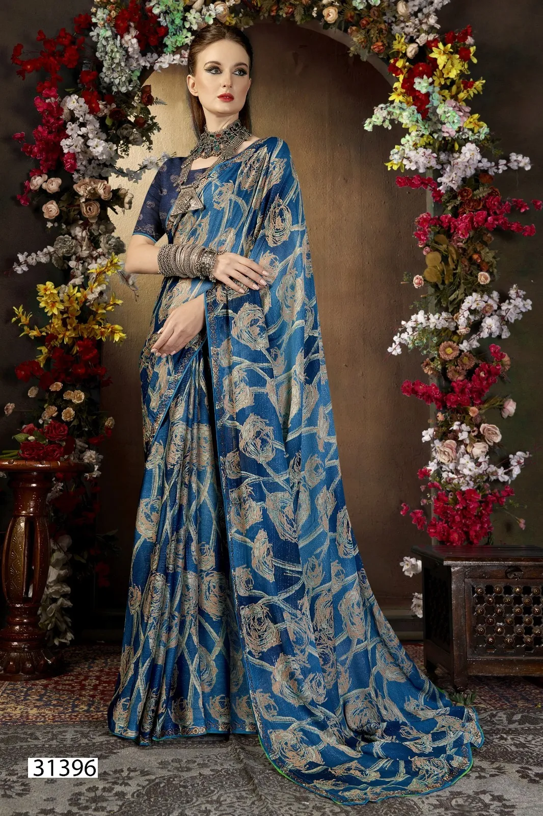 | Fabric | Georgette Abstract Print with Swarovski Saree |