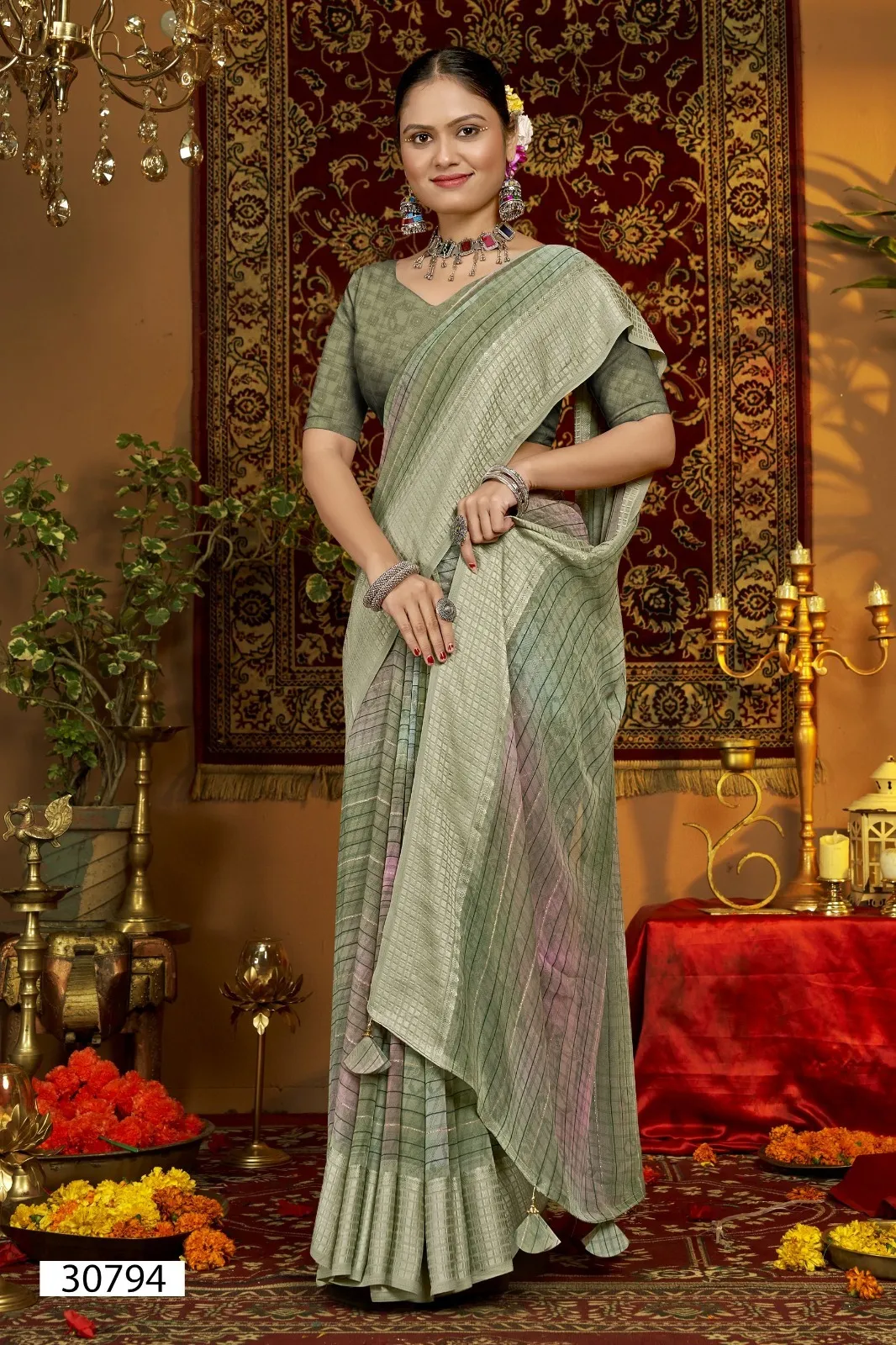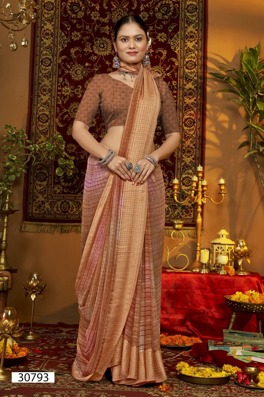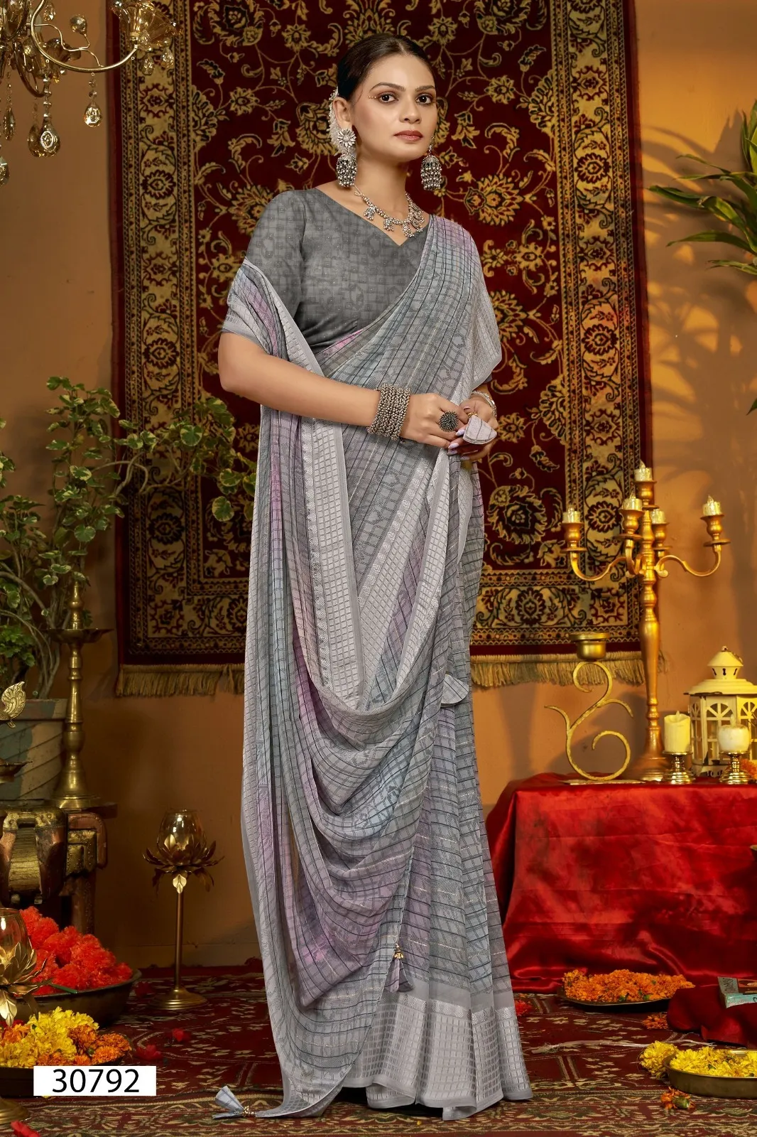 | Saree | Georgette Line Print with Viscose Border |