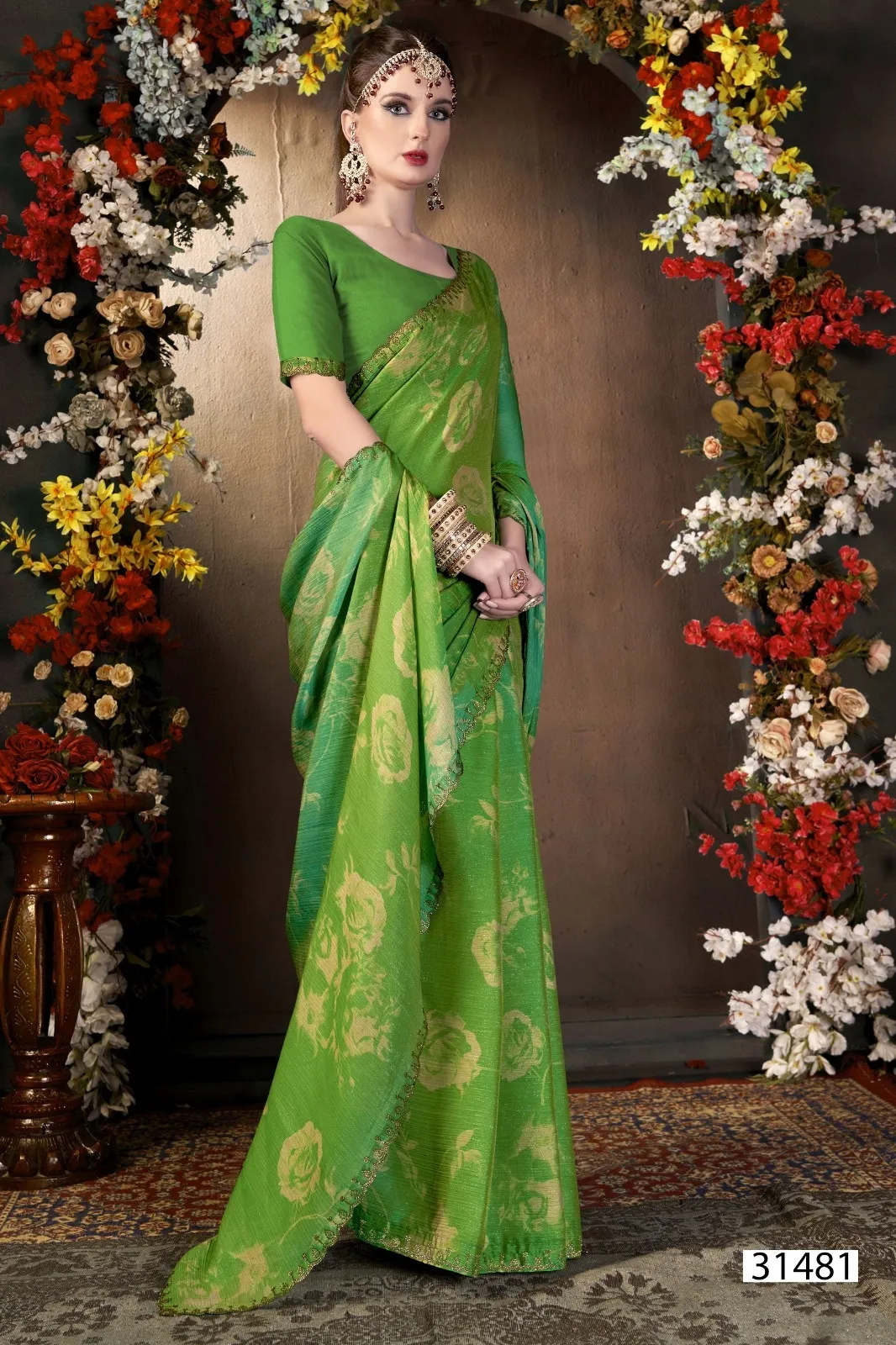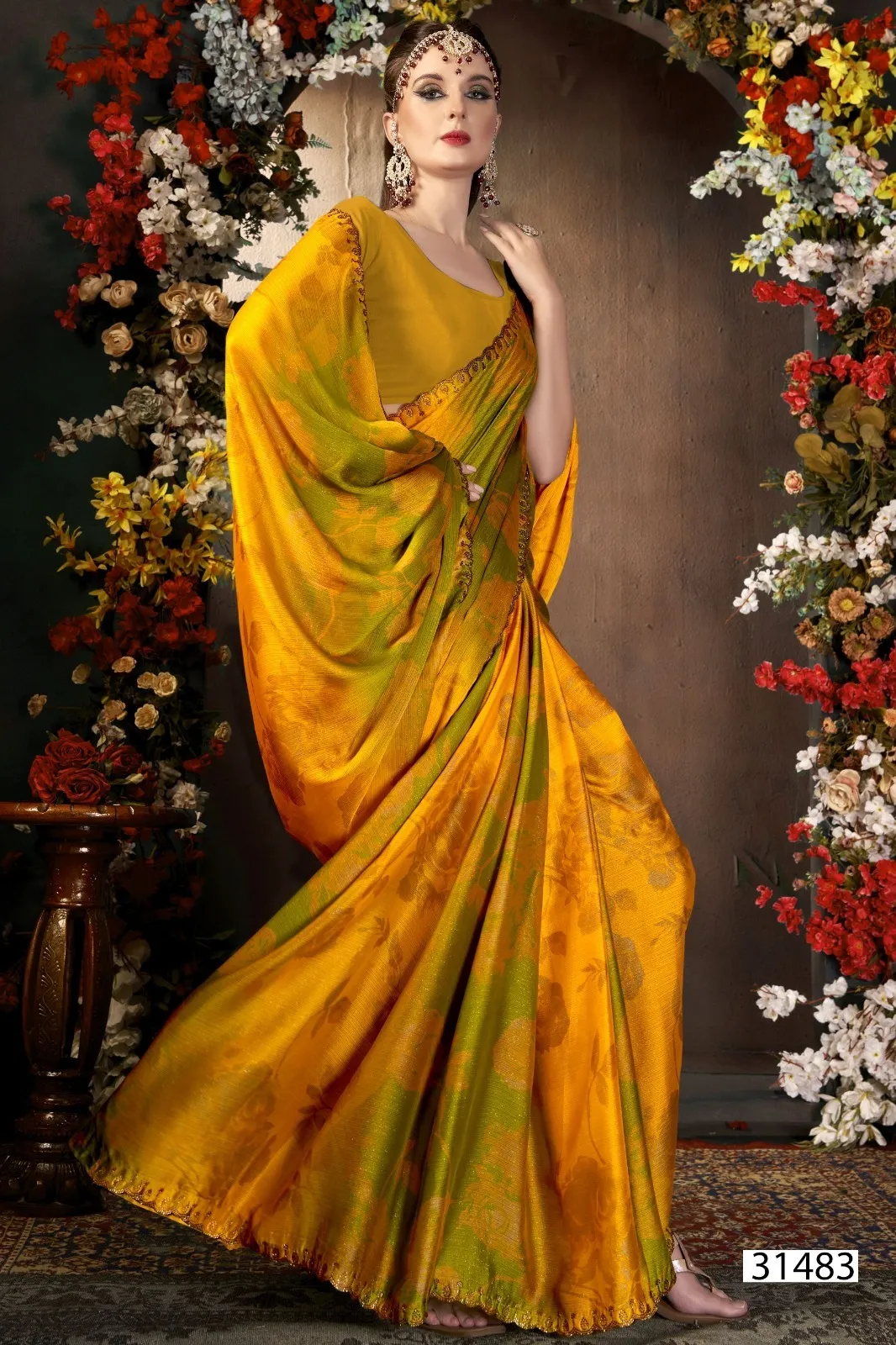 | Fabric | Chiffon Swarovski Work on Border |