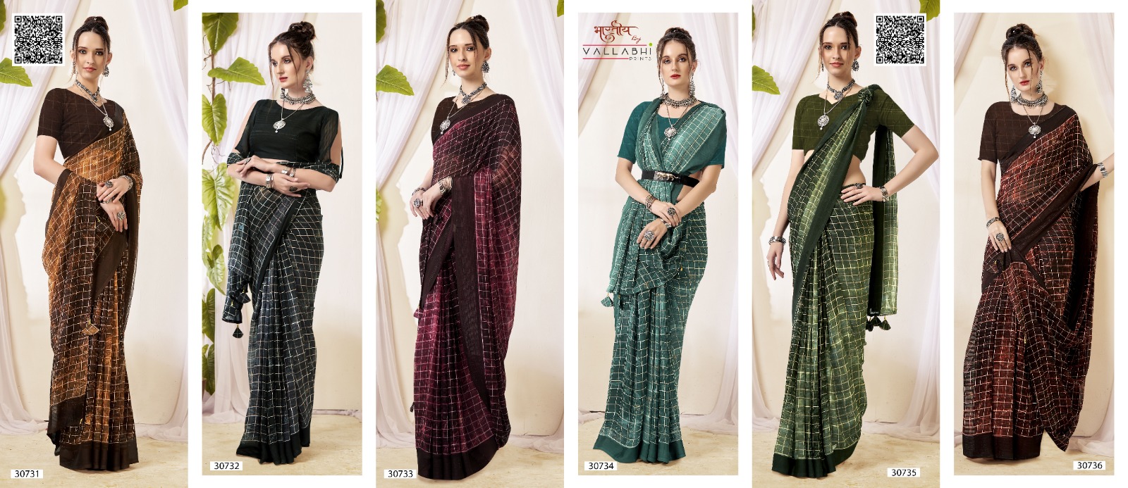 Upgrade your saree collection with the Vallabhi Prints Collection Pravita Catalog, featuring a refined selection of line print georgette sarees. These sarees are designed to offer both elegance and comfort, making them perfect for daily wear, office attire, or casual gatherings.