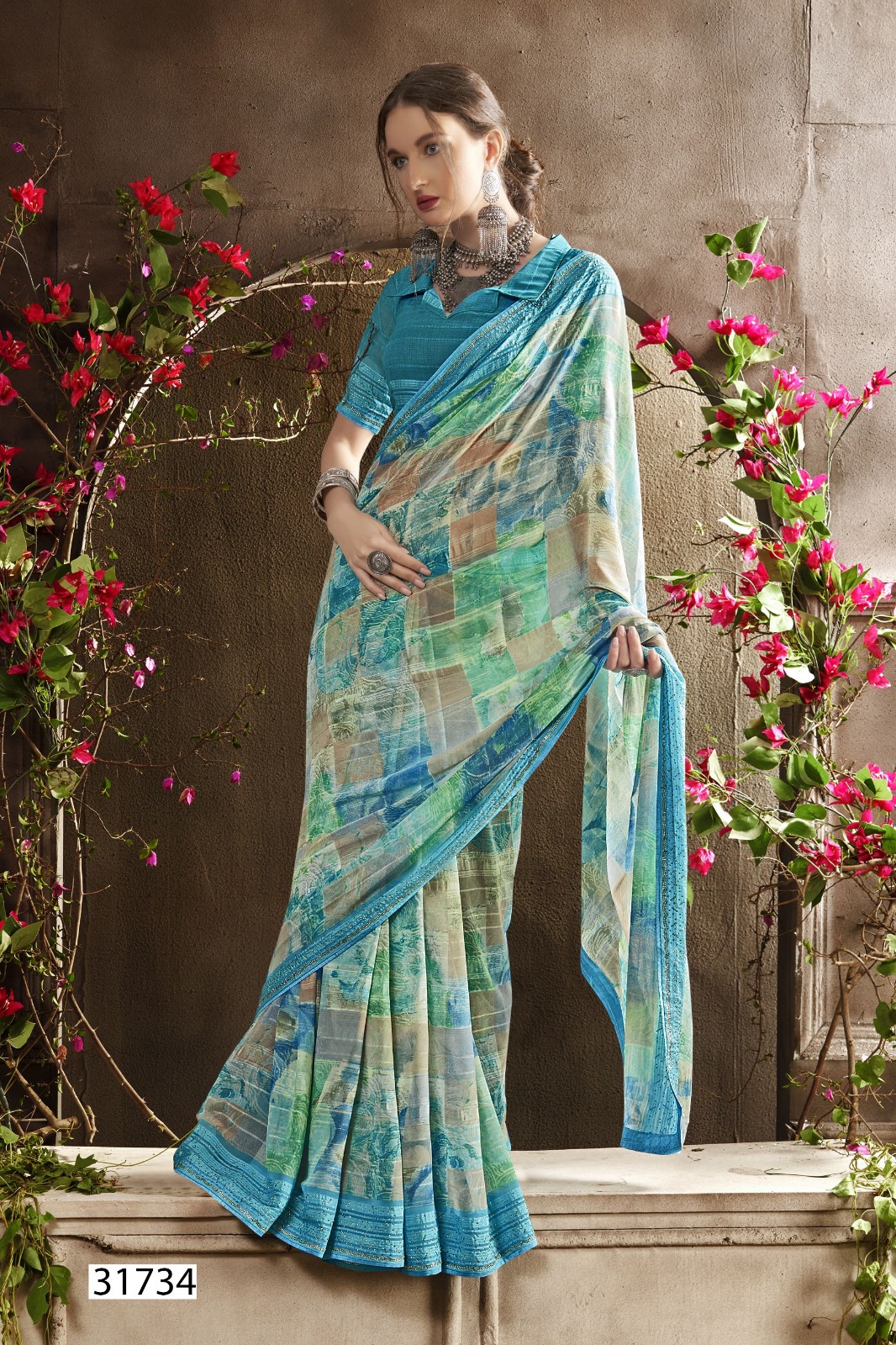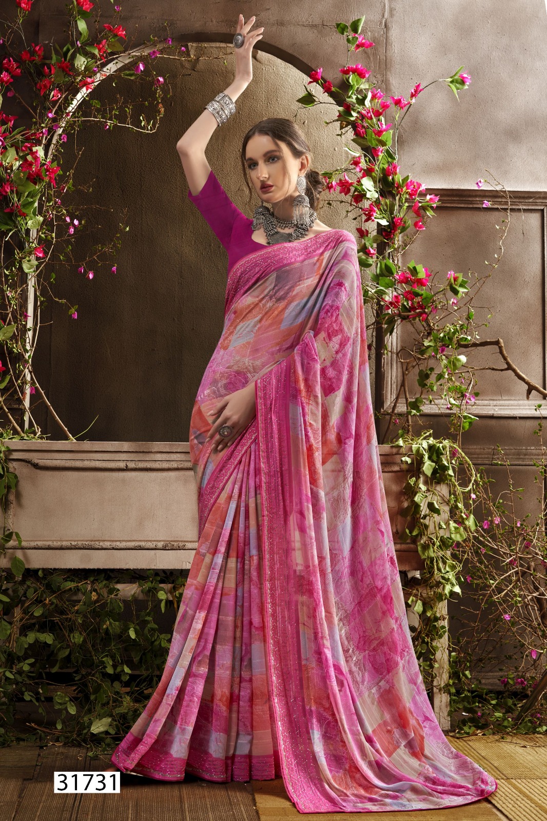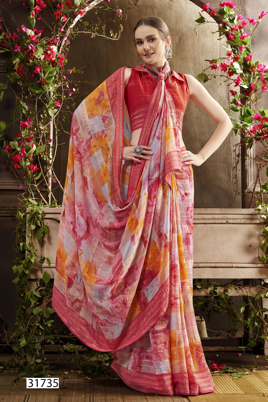 Georgette Abstract Print With Swarovski Work |