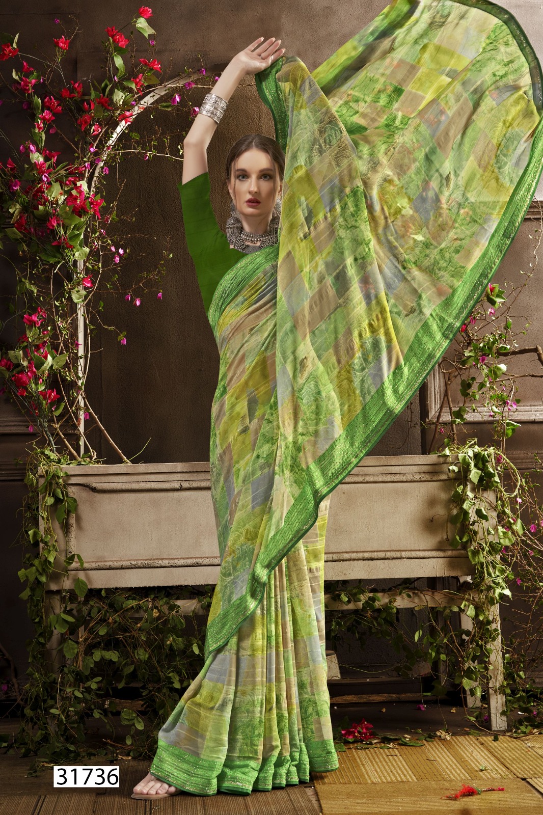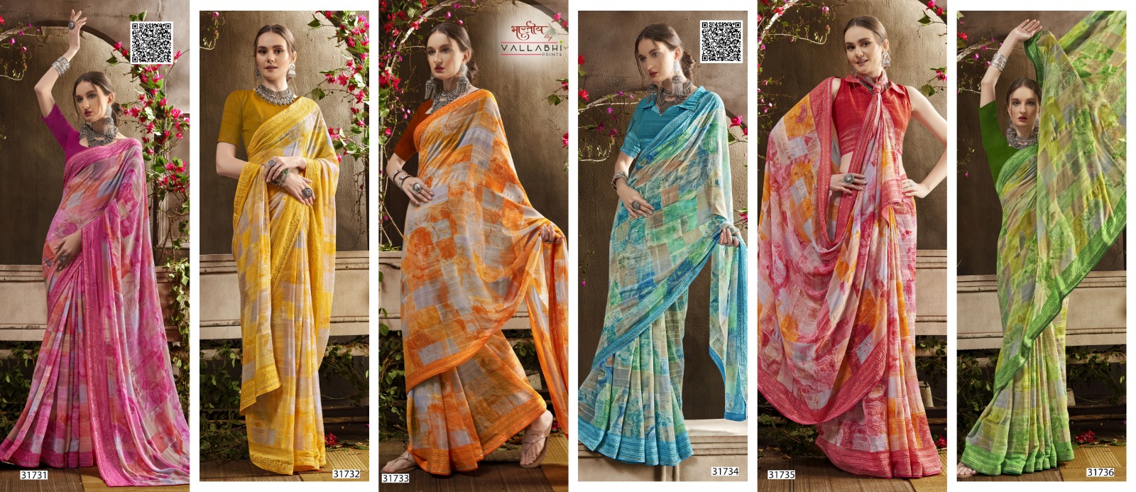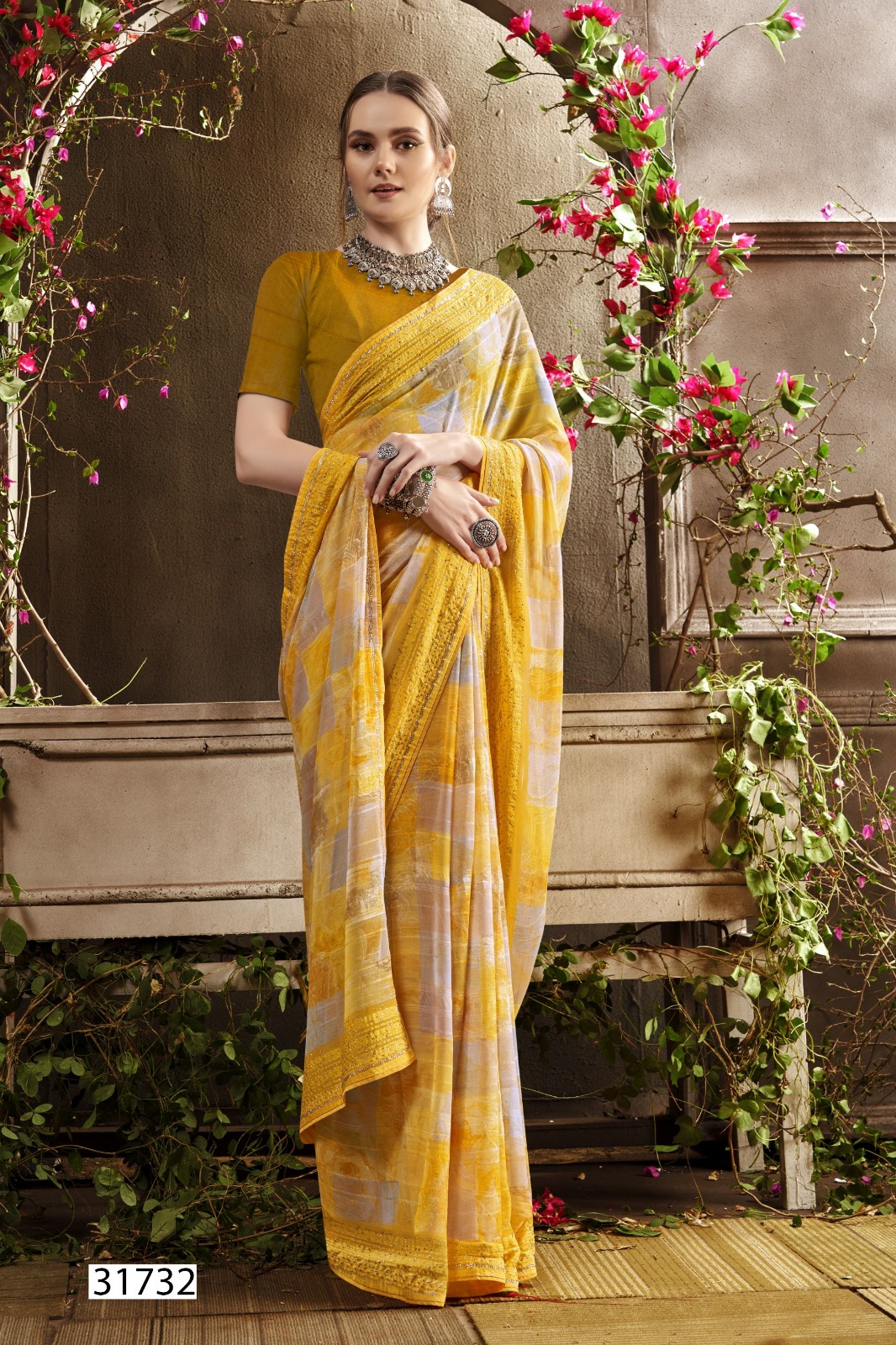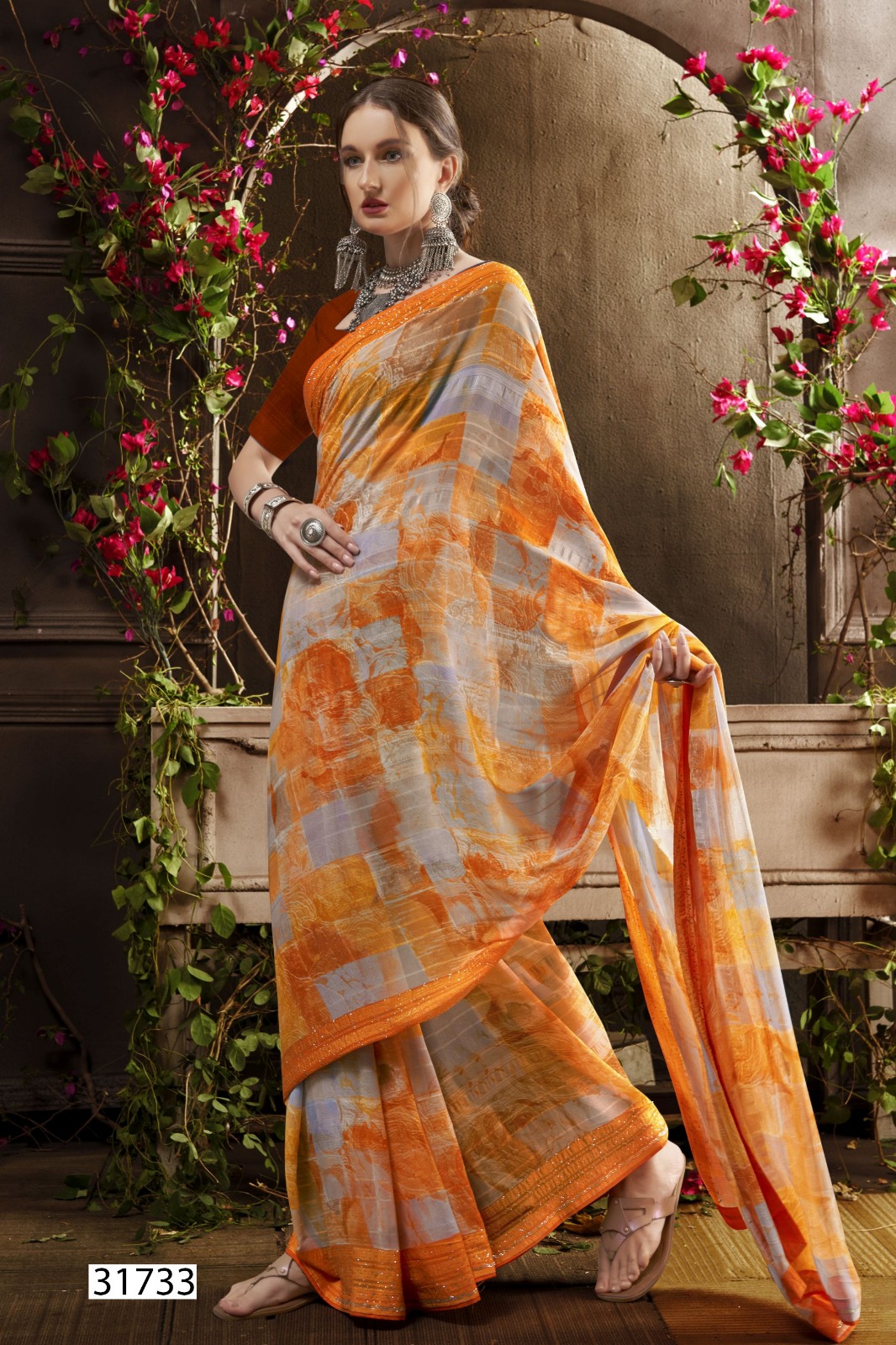Georgette Abstract Print With Swarovski Work |