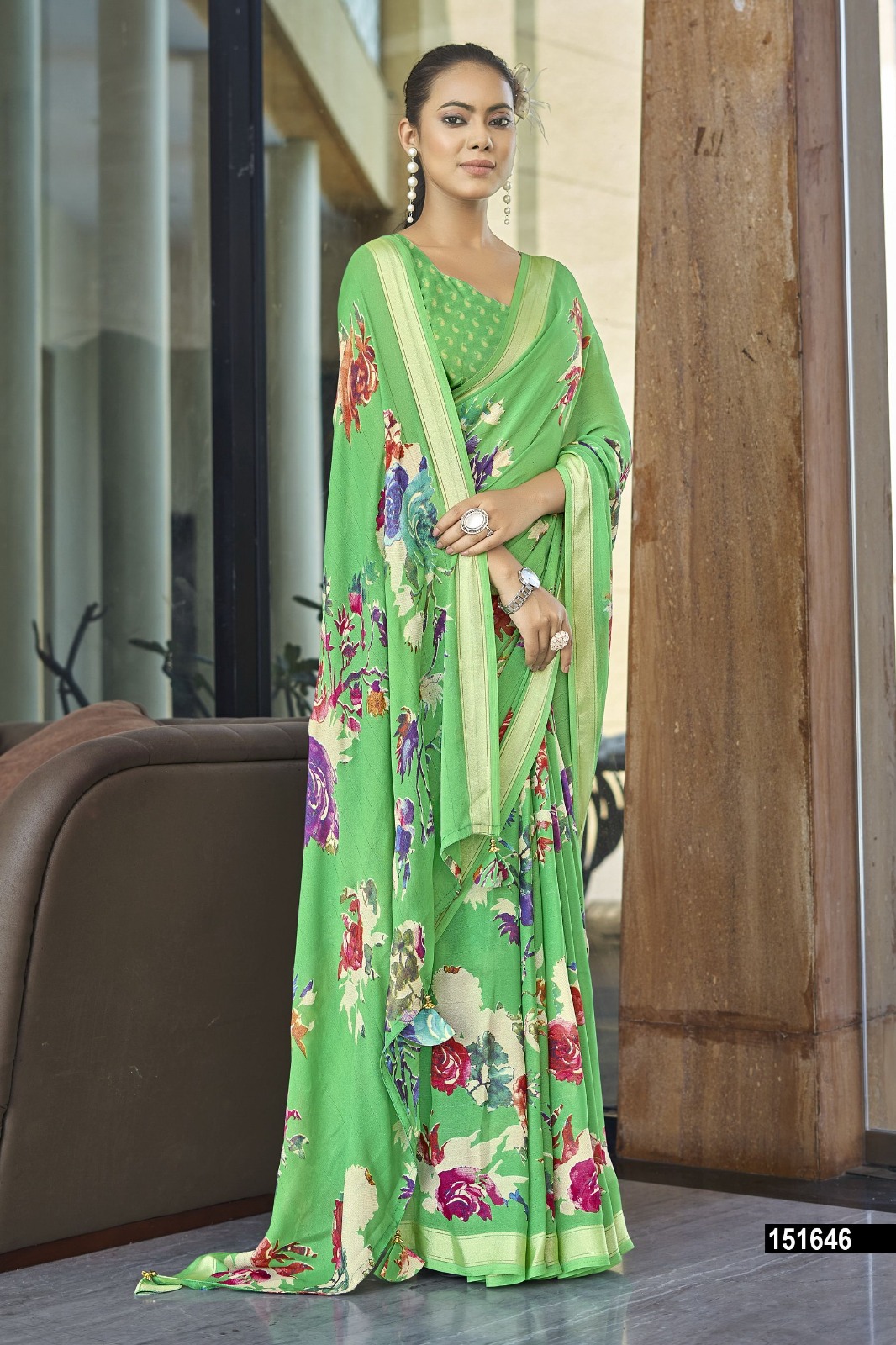 Vallabhi Shridha-09 Wholesale Floral Print Moss Georgette Saree Catalog.