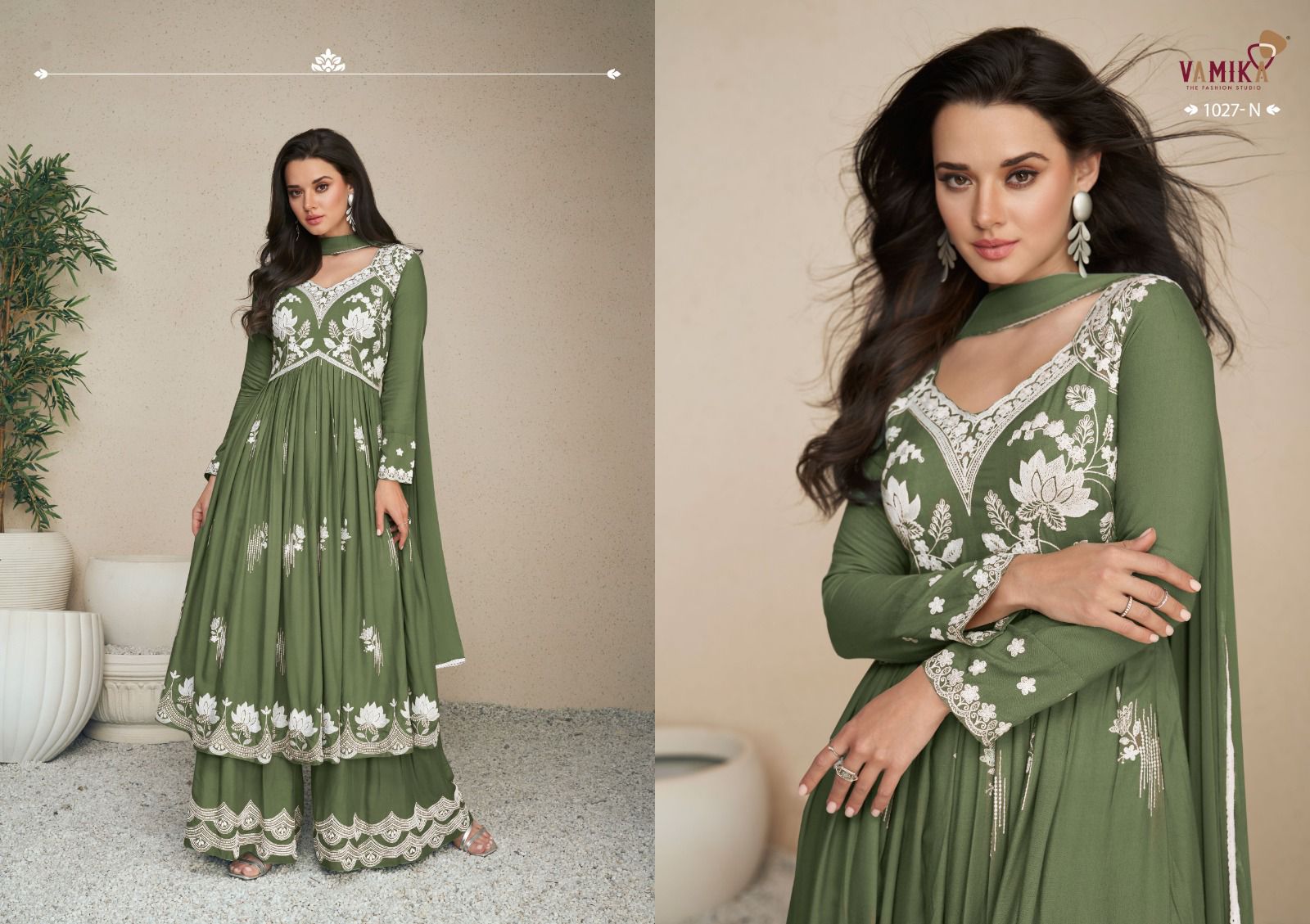 Add elegance to your ethnic wardrobe with Vamika Lakhnavi Vol 5 – Super Color Collection. Featuring 5 stunning designs (D.No. 1027K to 1027O), this ready-to-wear rayon suit set is ideal for festive, casual, or workwear use. Beautifully crafted in heavy Reyon fabric with a lightweight Nazmin dupatta, this collection blends comfort and class.