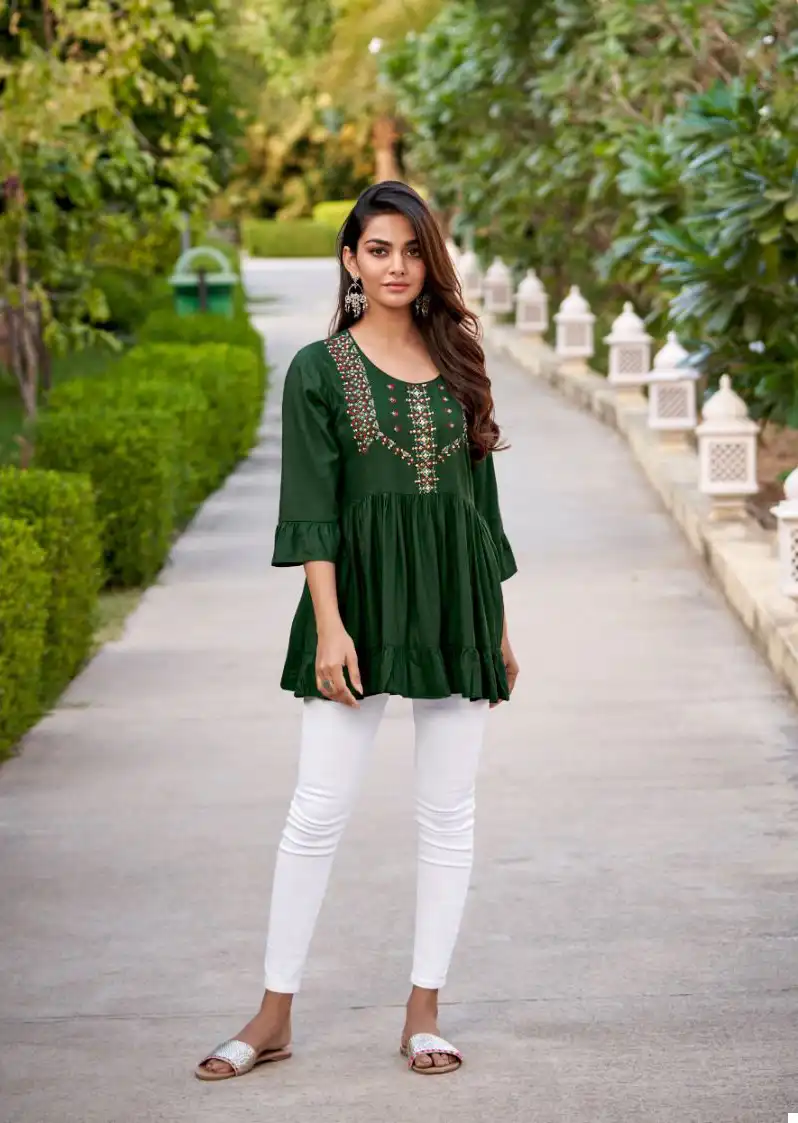 Material: Crafted from high-quality Heavy Rayon fabric, these tops are soft to the touch and offer a luxurious feel against the skin. The fabric’s durability ensures long-lasting wear, making it suitable for regular use without compromising on quality.