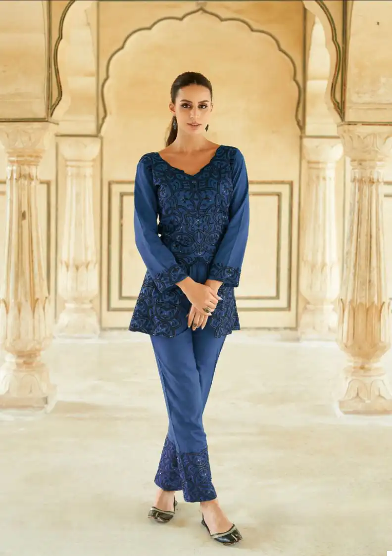 3. Stylish Top: The Heavy Rayon top is designed to enhance your silhouette and provide a flattering fit. Its contemporary design and impeccable stitching add a touch of sophistication to your look, making it perfect for various occasions.