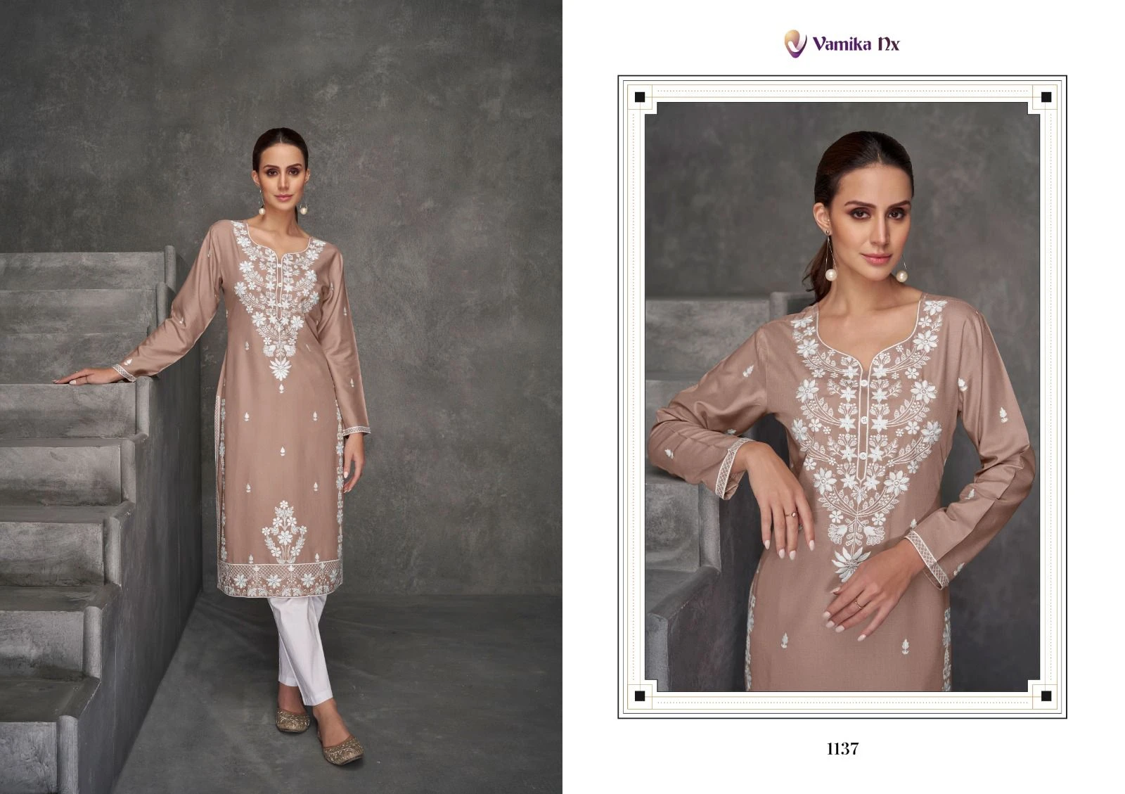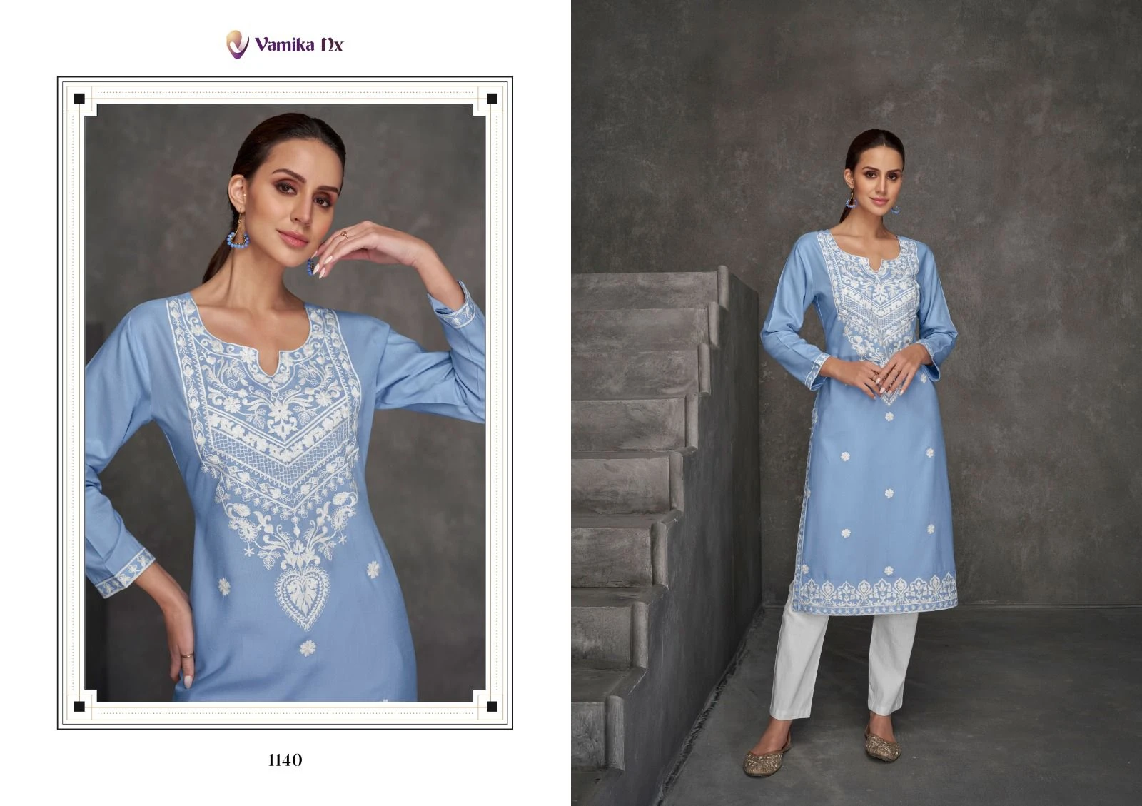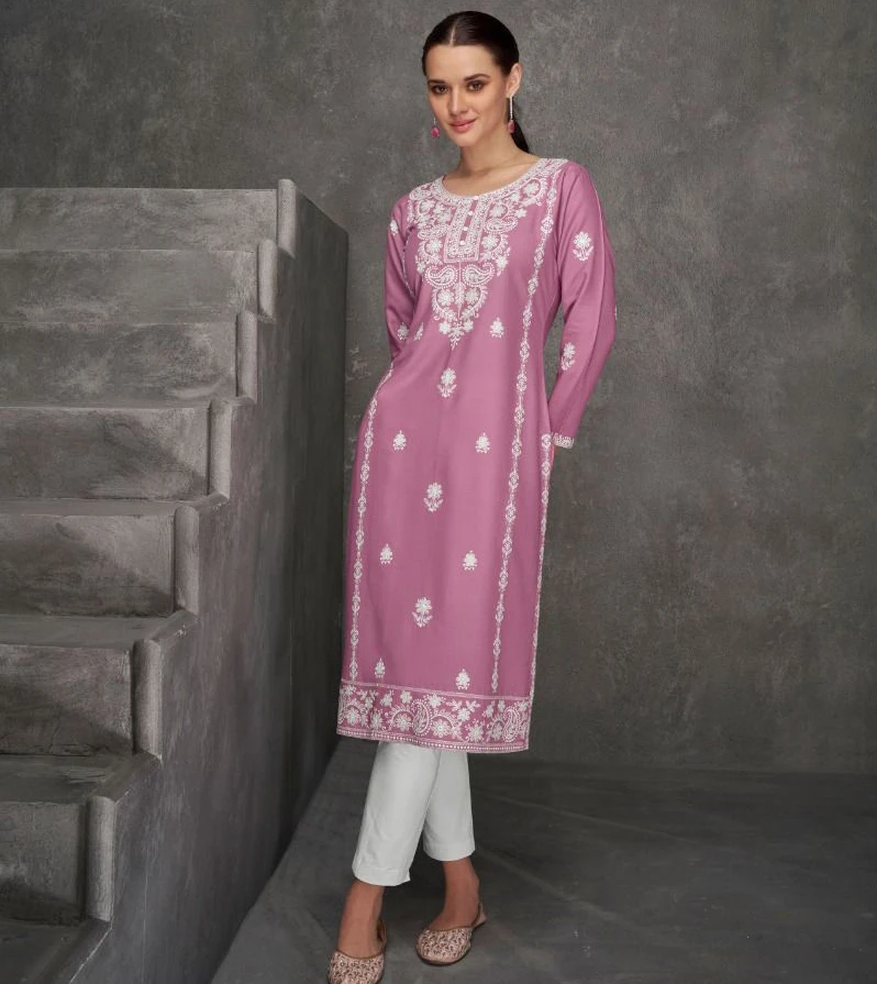 This product is a set of outfits made from pure rayon viscose fabric, featuring intricate Lakhnawi stitch detailing on the top. The set includes matching bottoms, providing a coordinated and elegant ensemble suitable for various occasions.