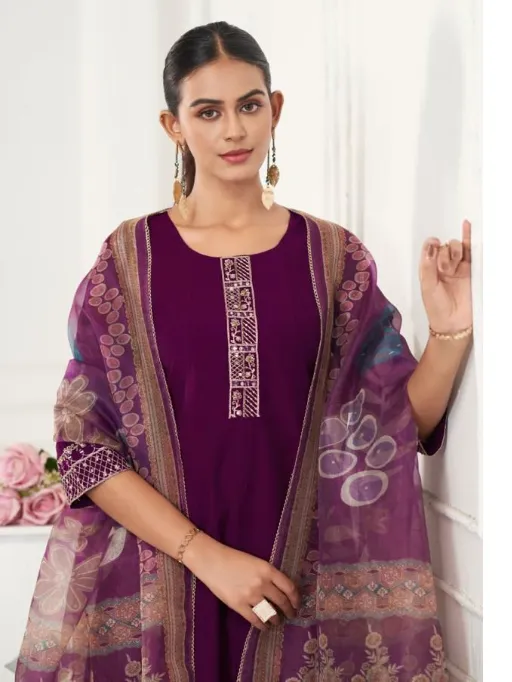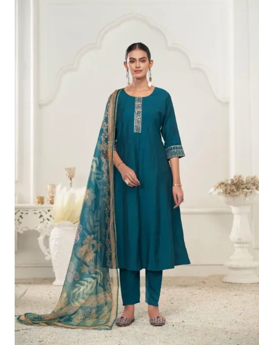 Vamika Rubina Vol 1 Viscose Roman Silk Work Kurti With Bottom Dupatta.