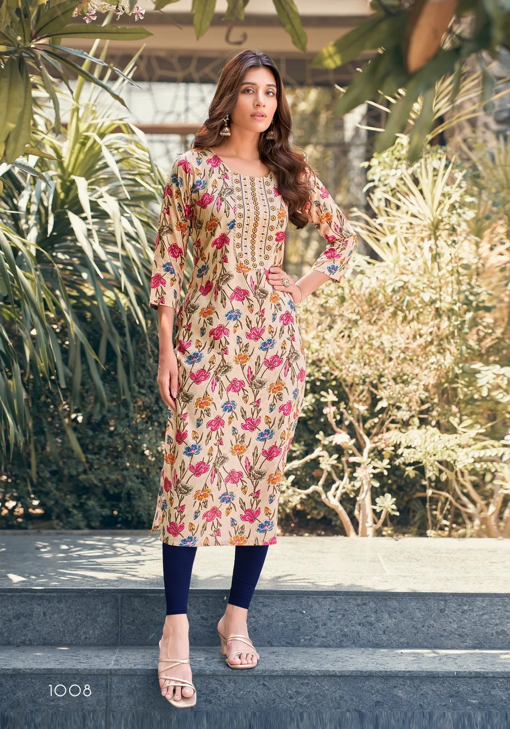 Vaniska Charming Vol 1 Rayon Foil Printed Wholesale Kurti Collection