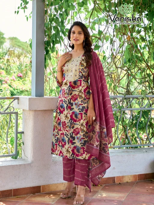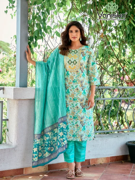 Vaniska Fashion Story Vol 1 Wholesale Viscose Chanderi Readymade Salwar Suit.