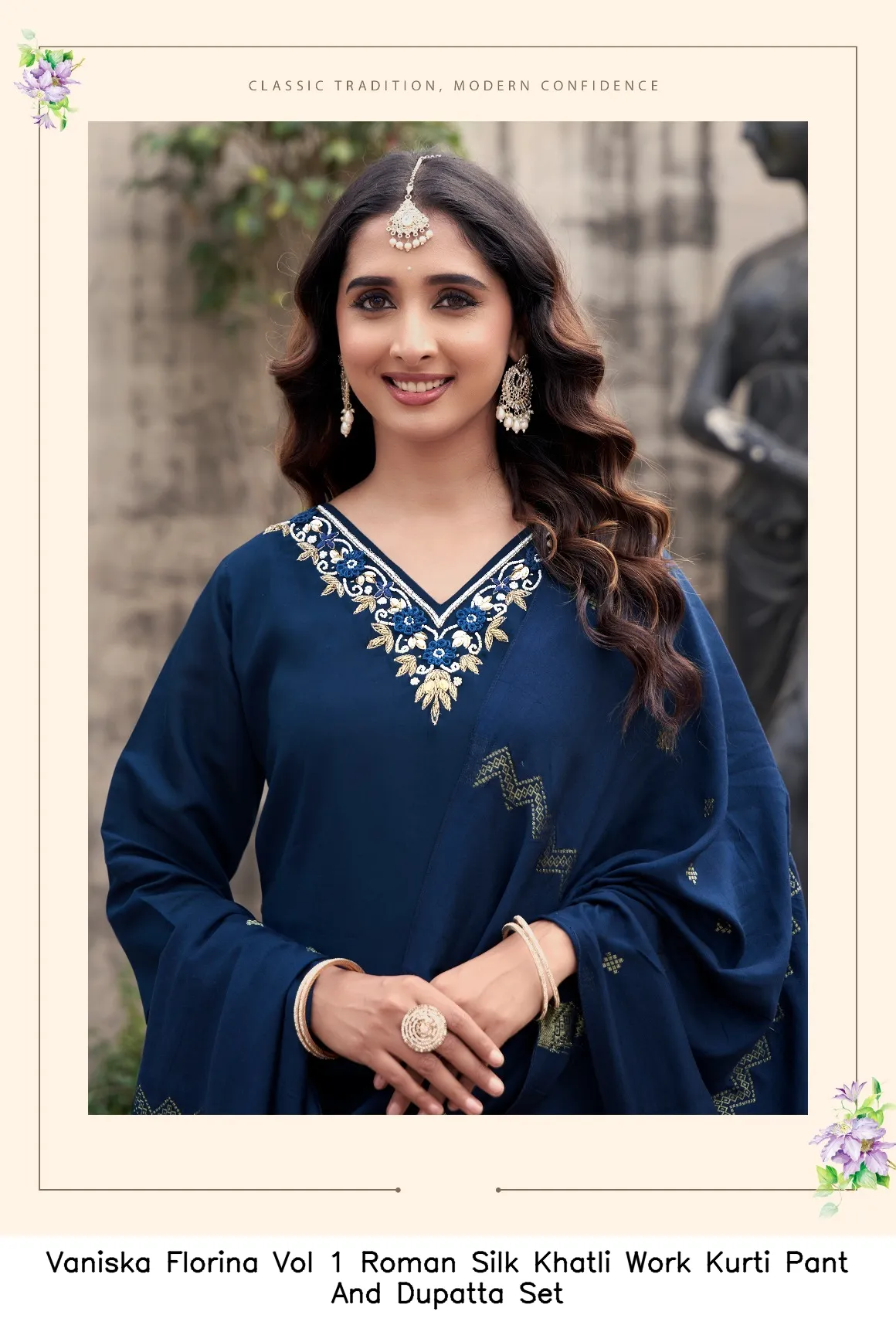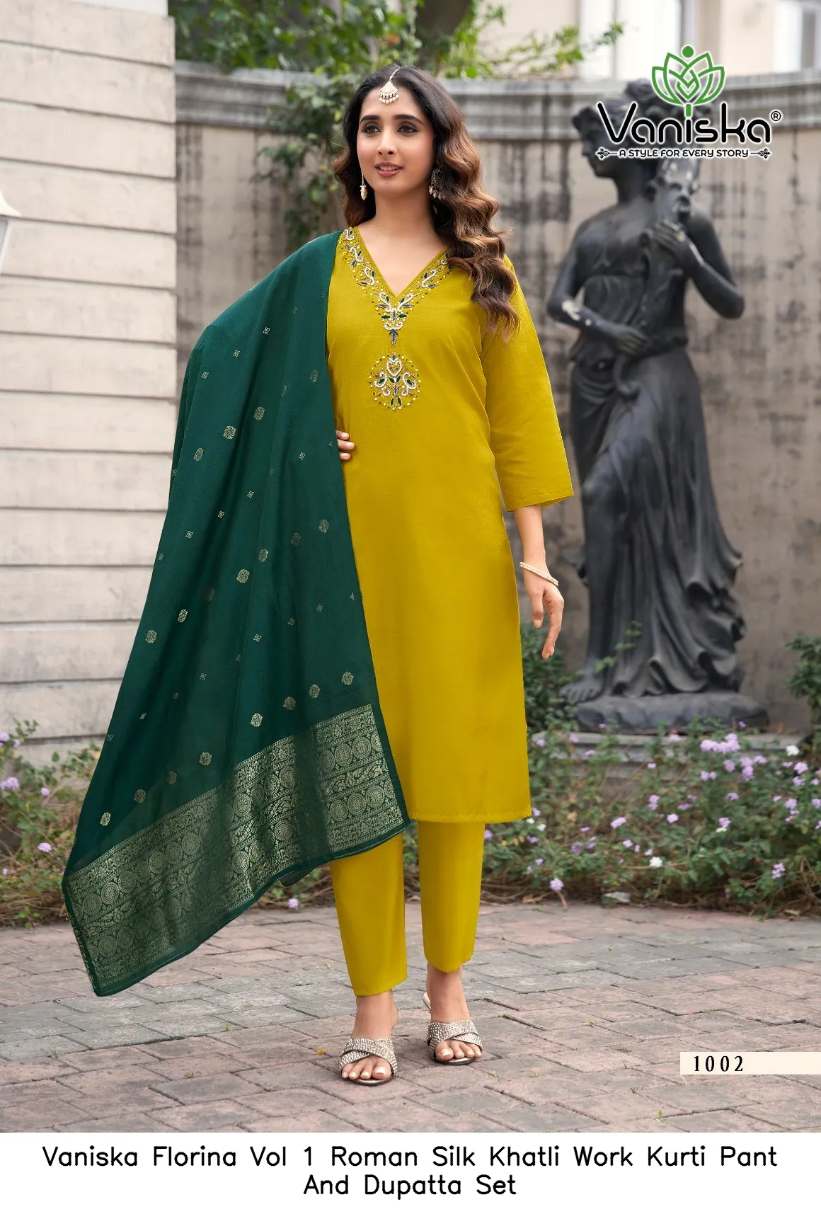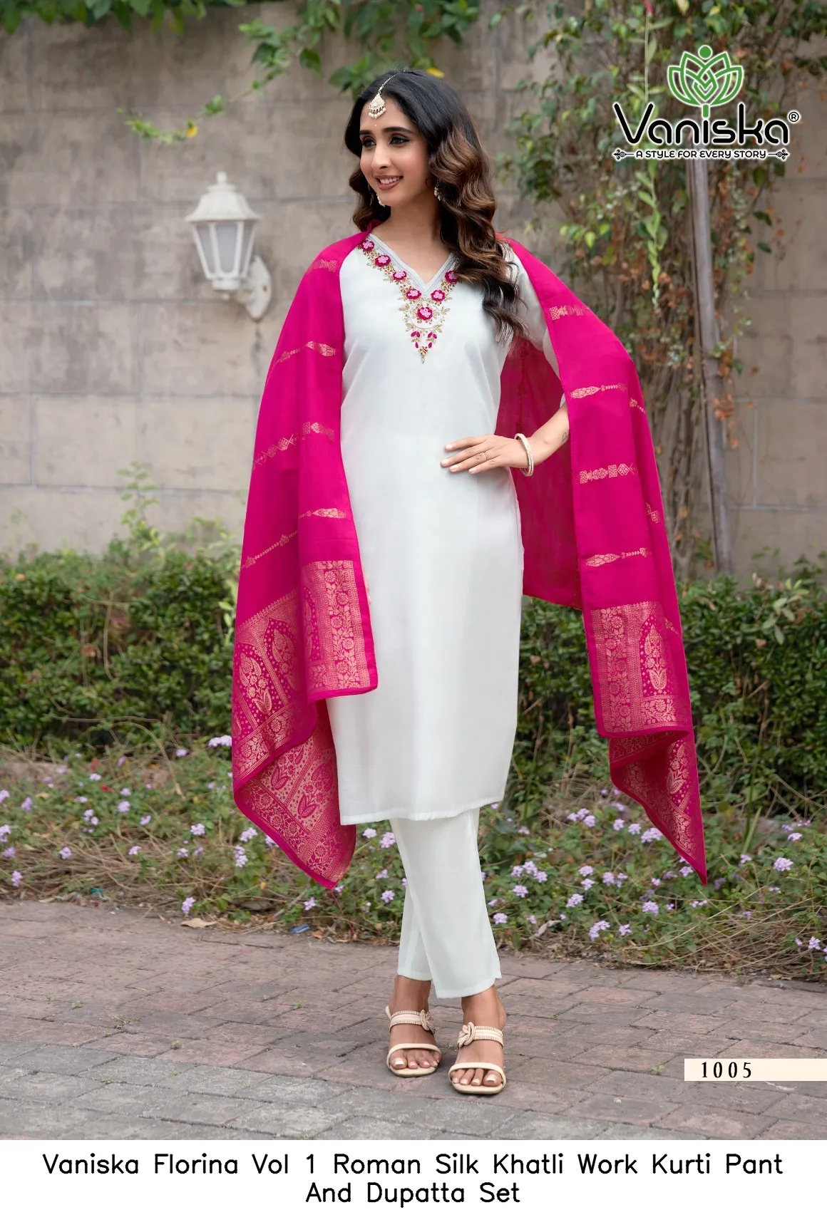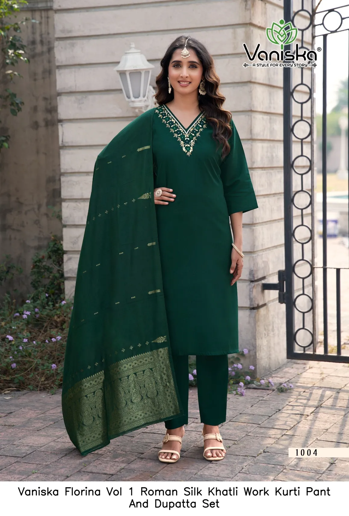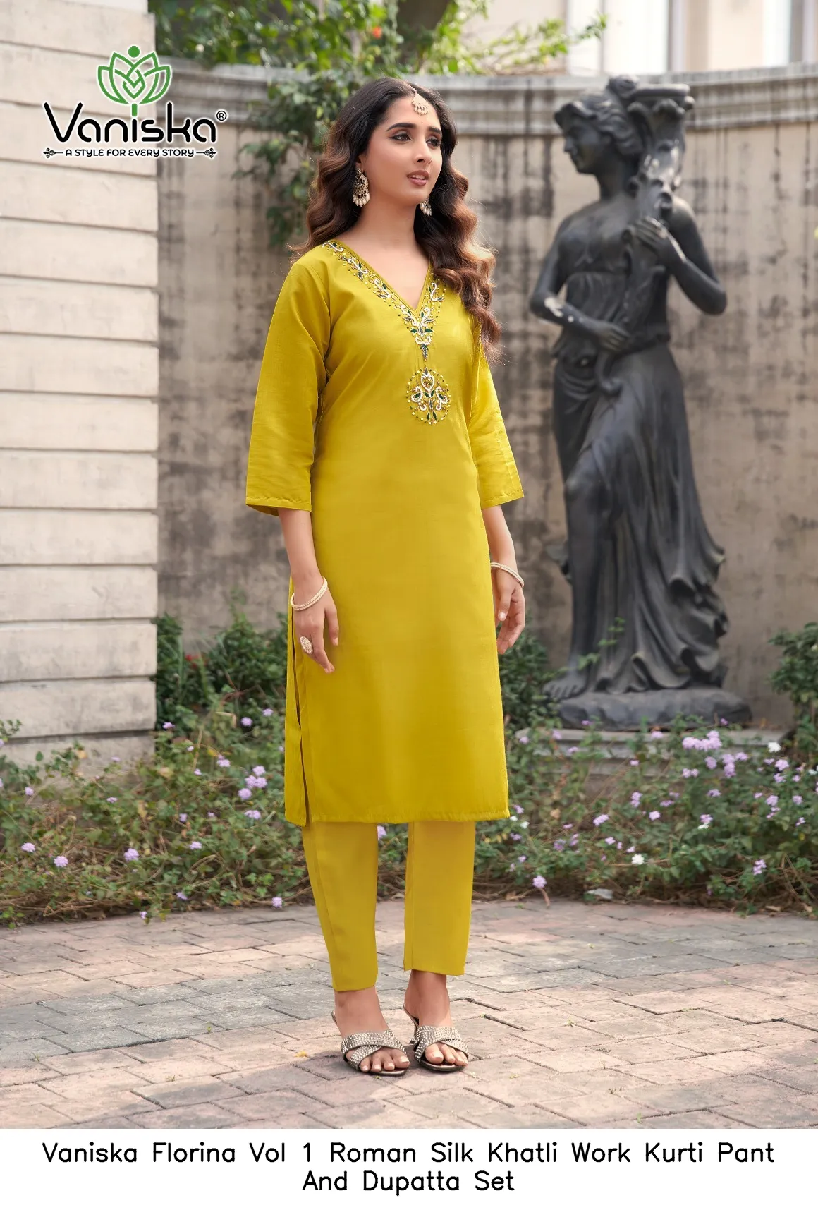 Vaniska Florina Vol 1 Roman Silk Khatli Work Kurti Pant And Dupatta Set