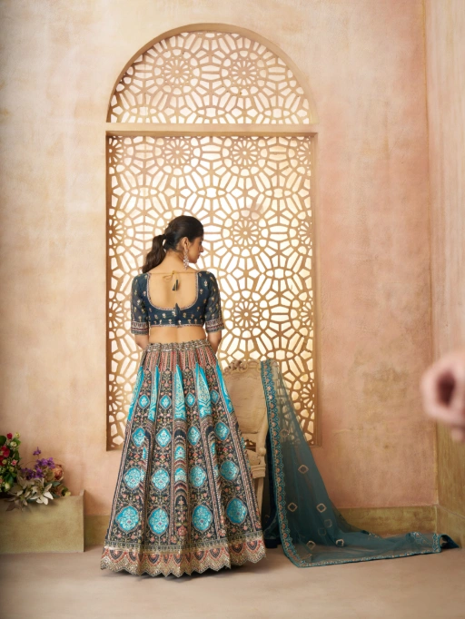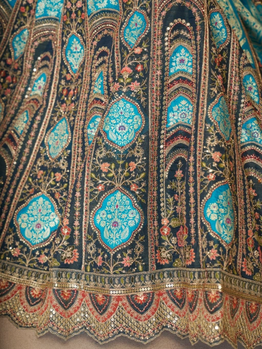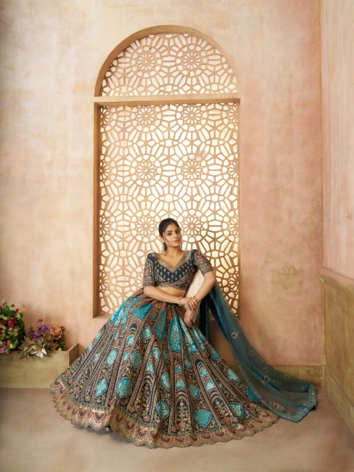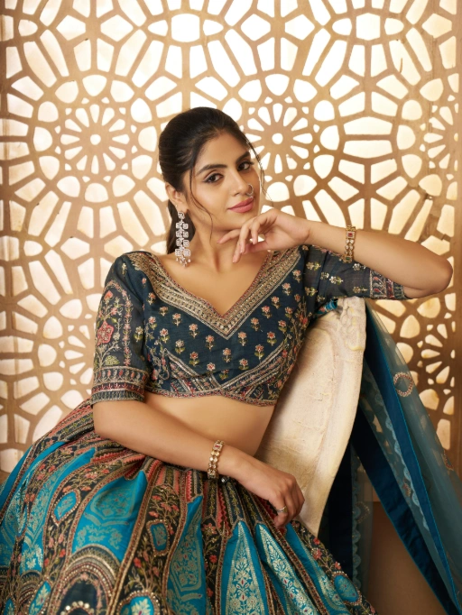 Vardan Ethnic Blue Aari Embroidered Banarasi Wedding Lehenga Choli