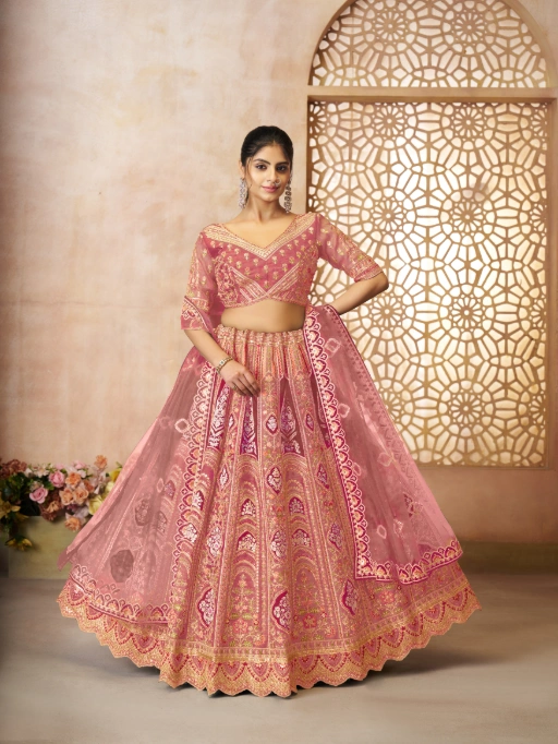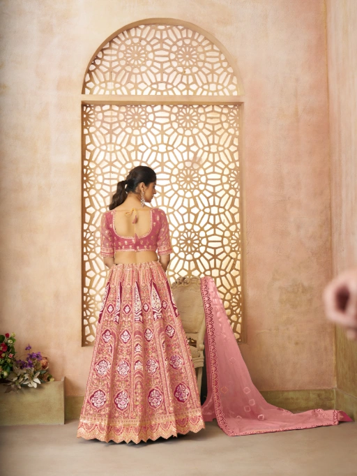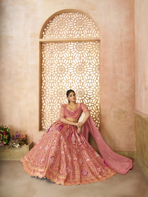 Vardan 31 Pink Aari Embroidered Banarasi Lehenga for Wedding
