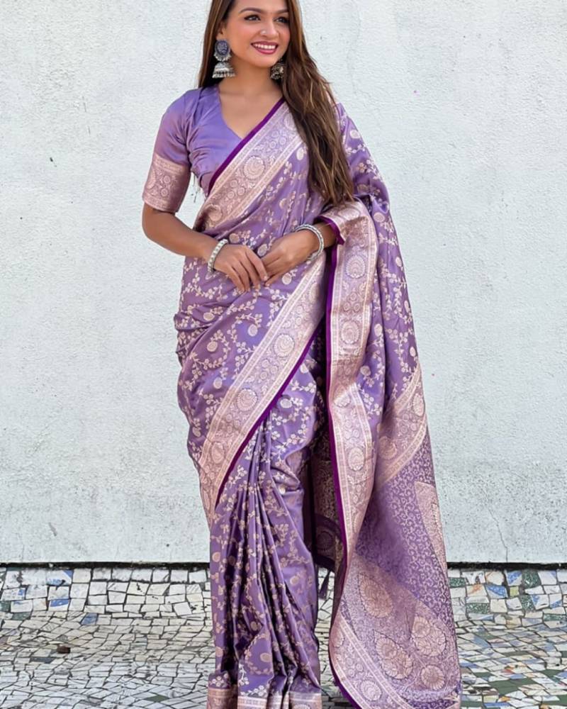 ✓Soft Banarasi Silk ✓Elegant Jacquard Weave ✓₹649 + GST ✓4 pcs catalog
