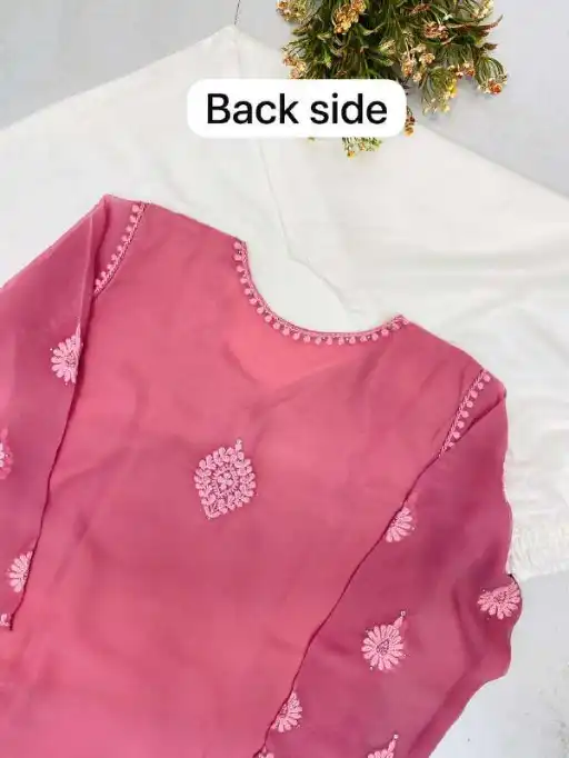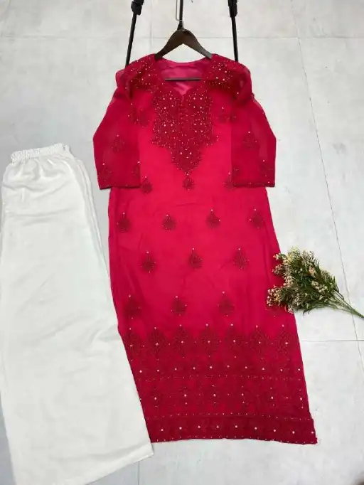 ✓Georgette with embroidery ✓Free-size plazo ✓₹1149 + GST ✓Sizes M to XXL ✓Fully stitched set